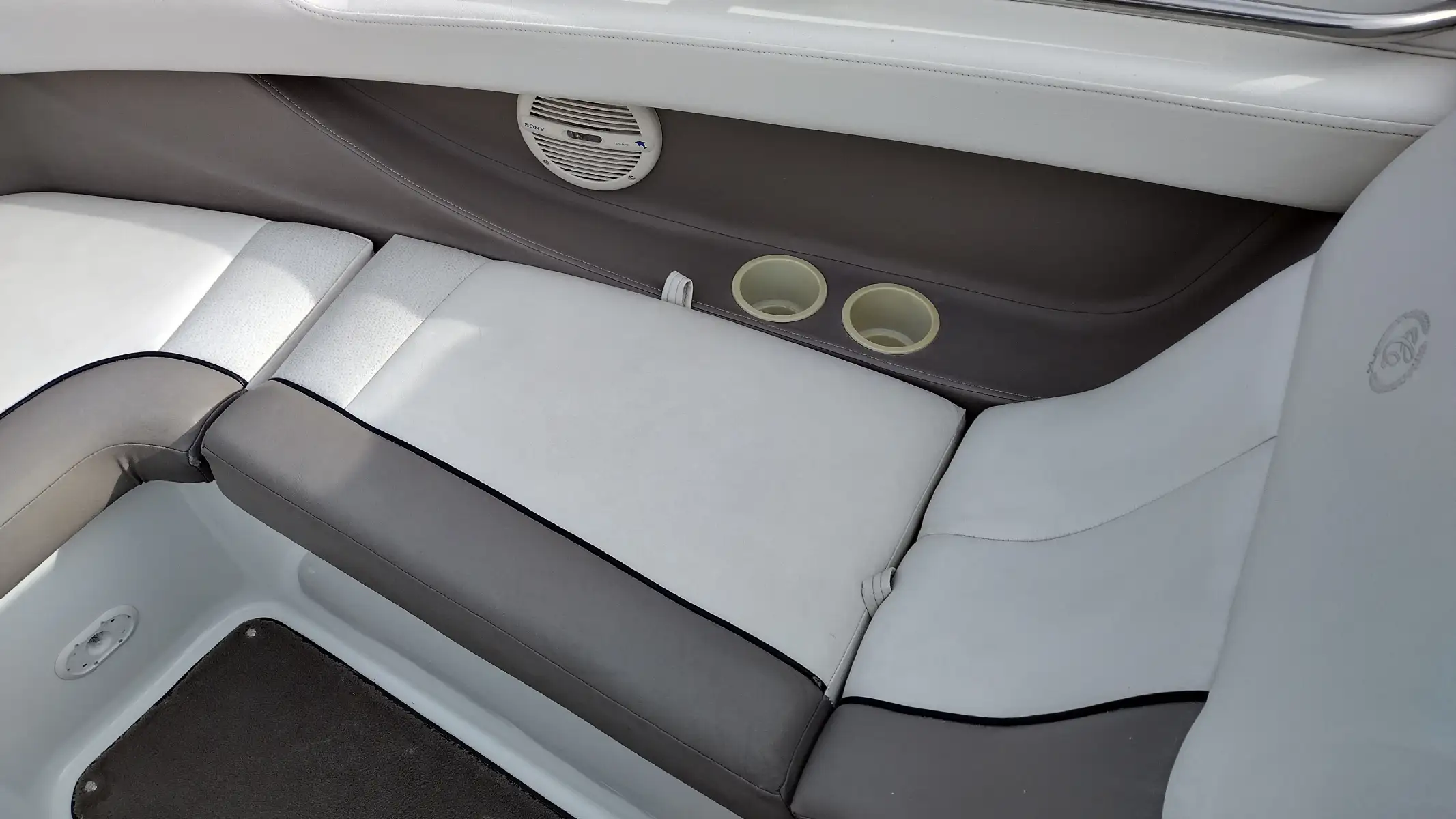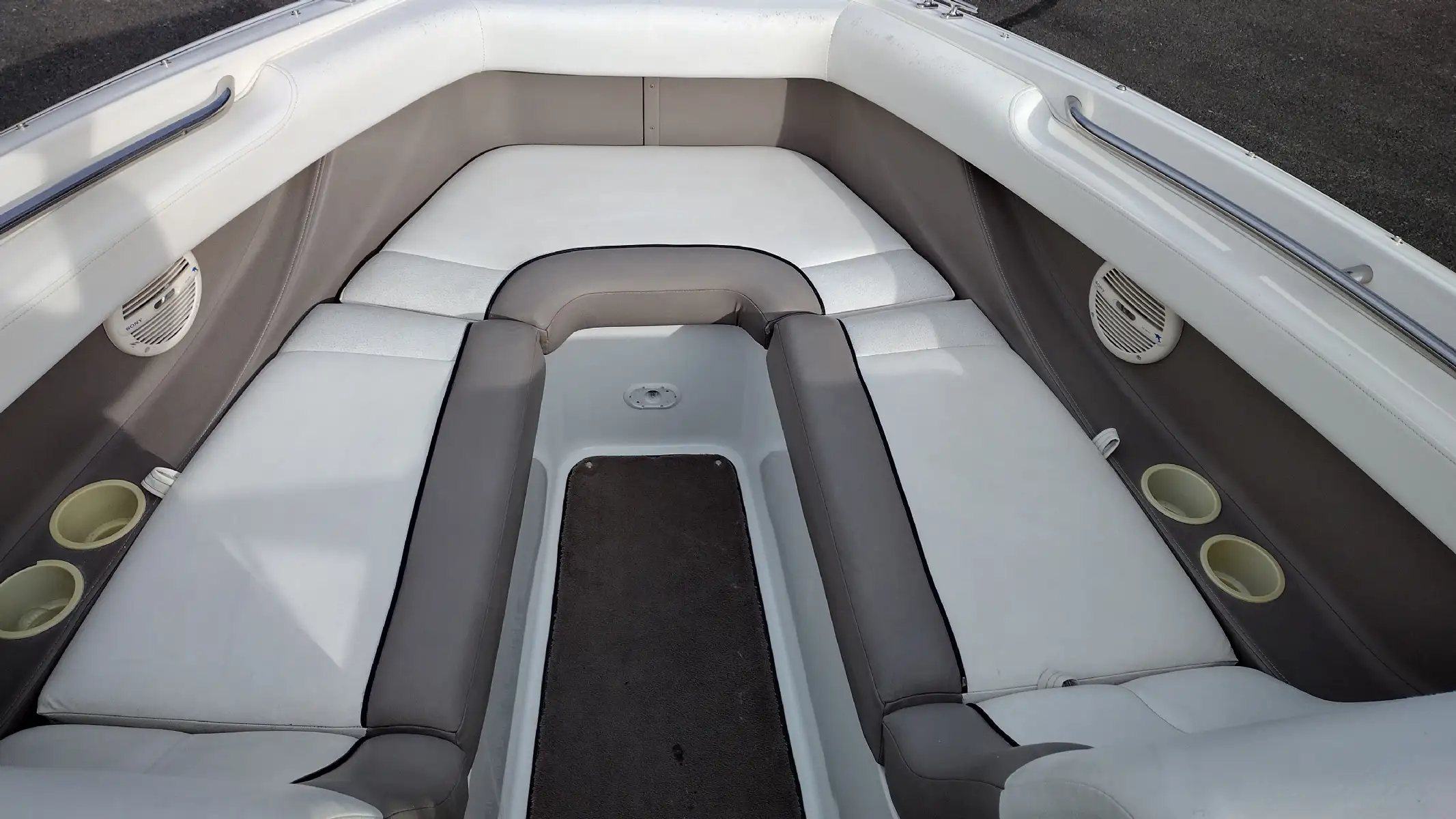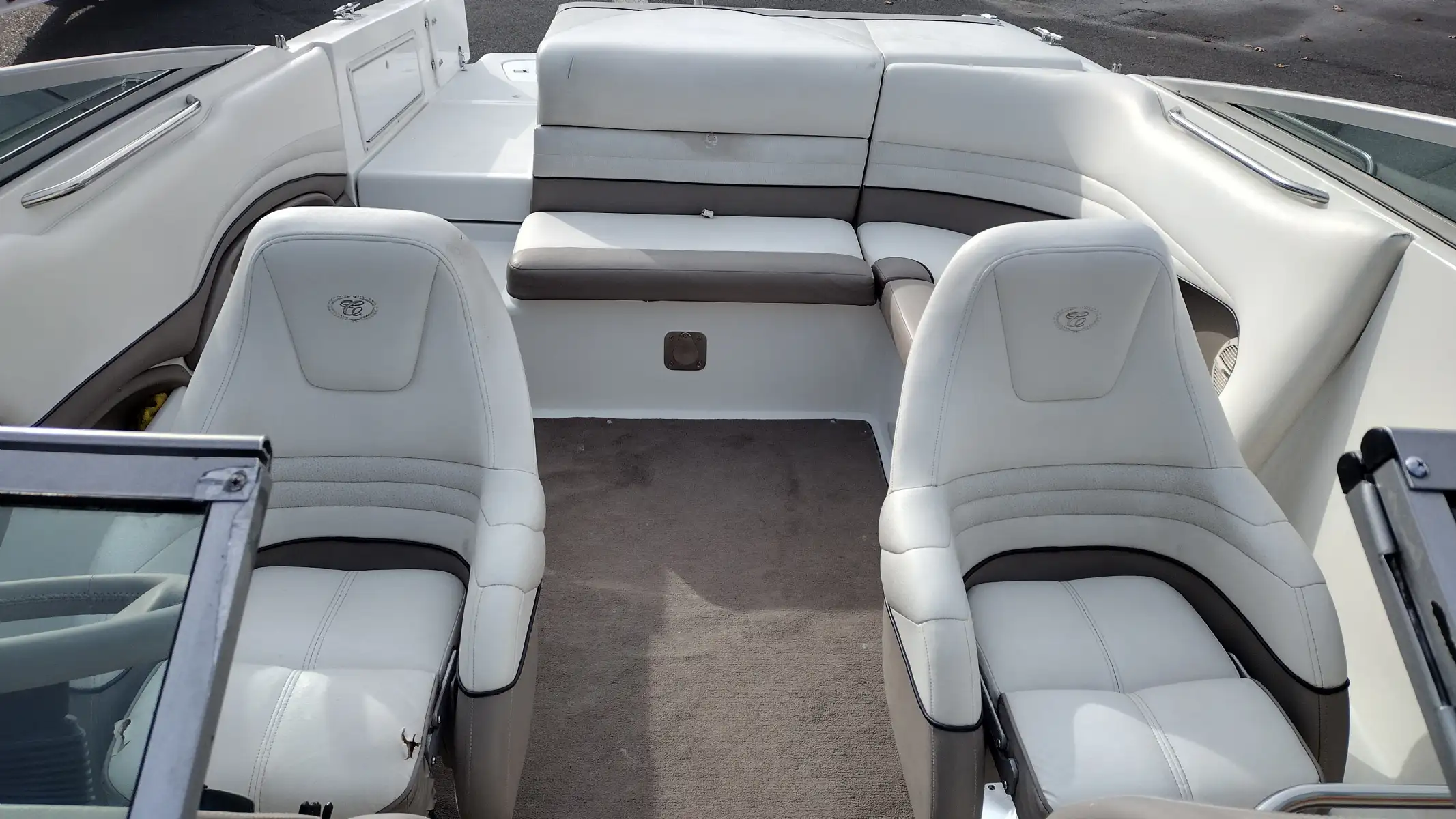 Standard Features Include; Bowrider, 12 Person/1450 lb Capacity, Bimini Top, Stainless Steel Dual Props, Docking Lights, Snap In Cockpit Carpet, Swim Platform w/ Ladder, Ski Tow Eye, Trim Tabs, Tilt Steering Wheel, Inflate-all Air Pump, In Floor Ski Locker, Enclosed Porta Potty