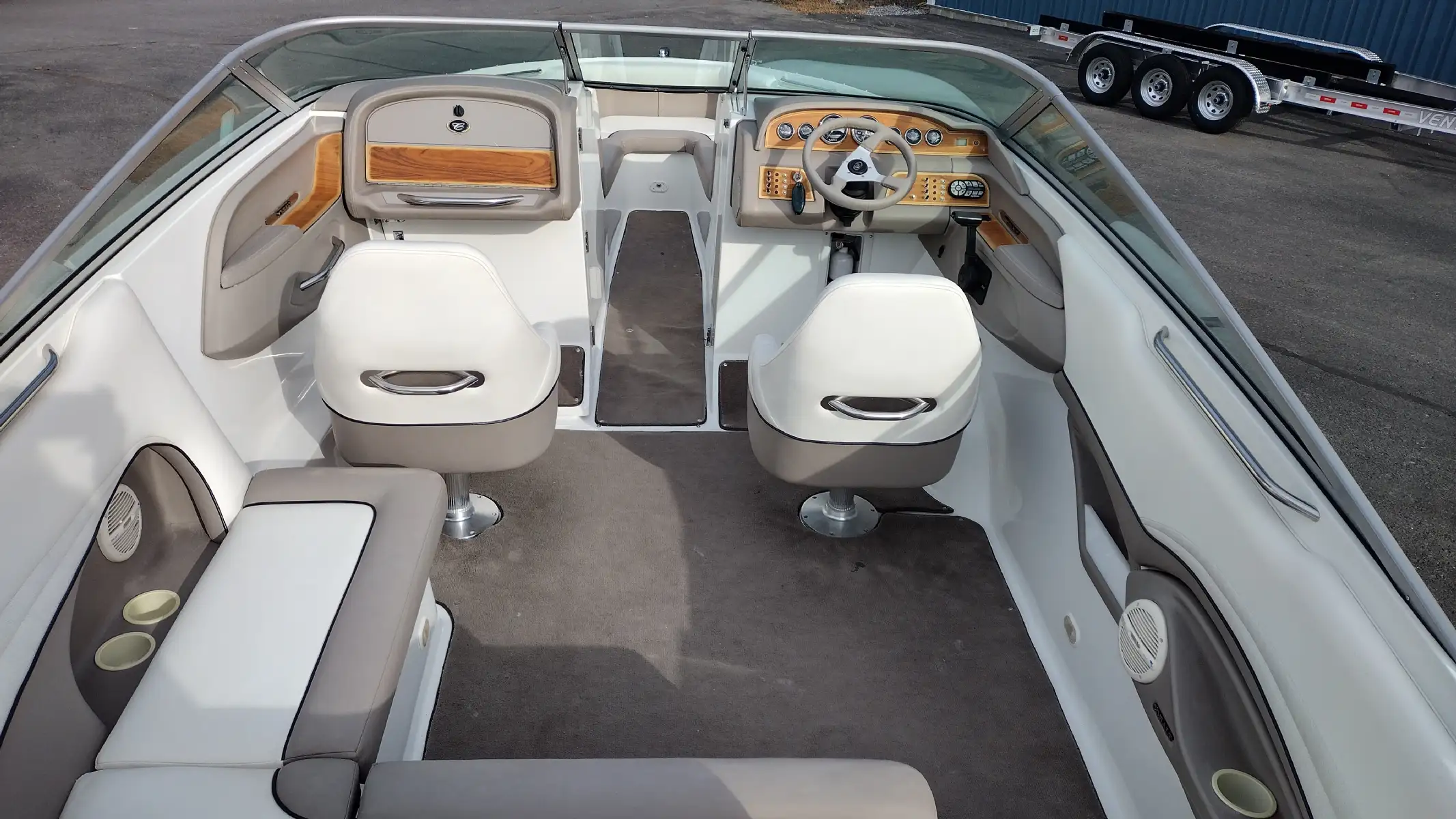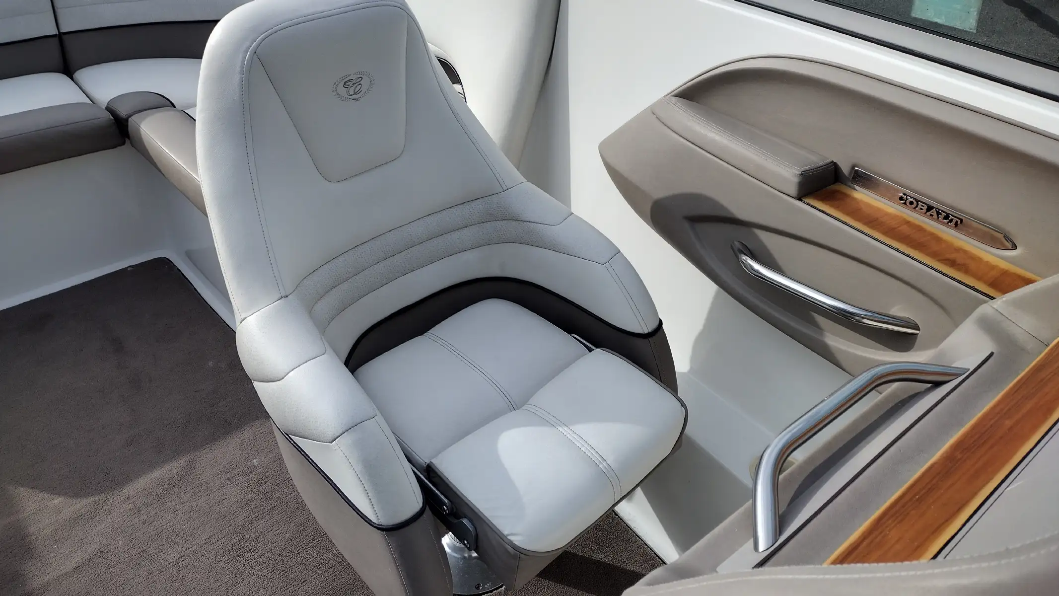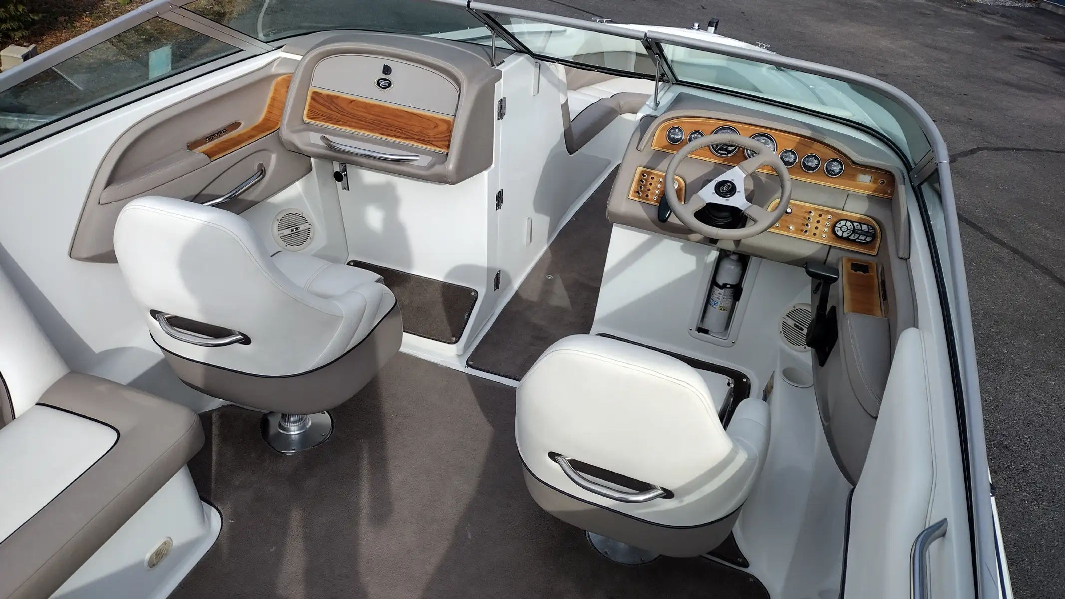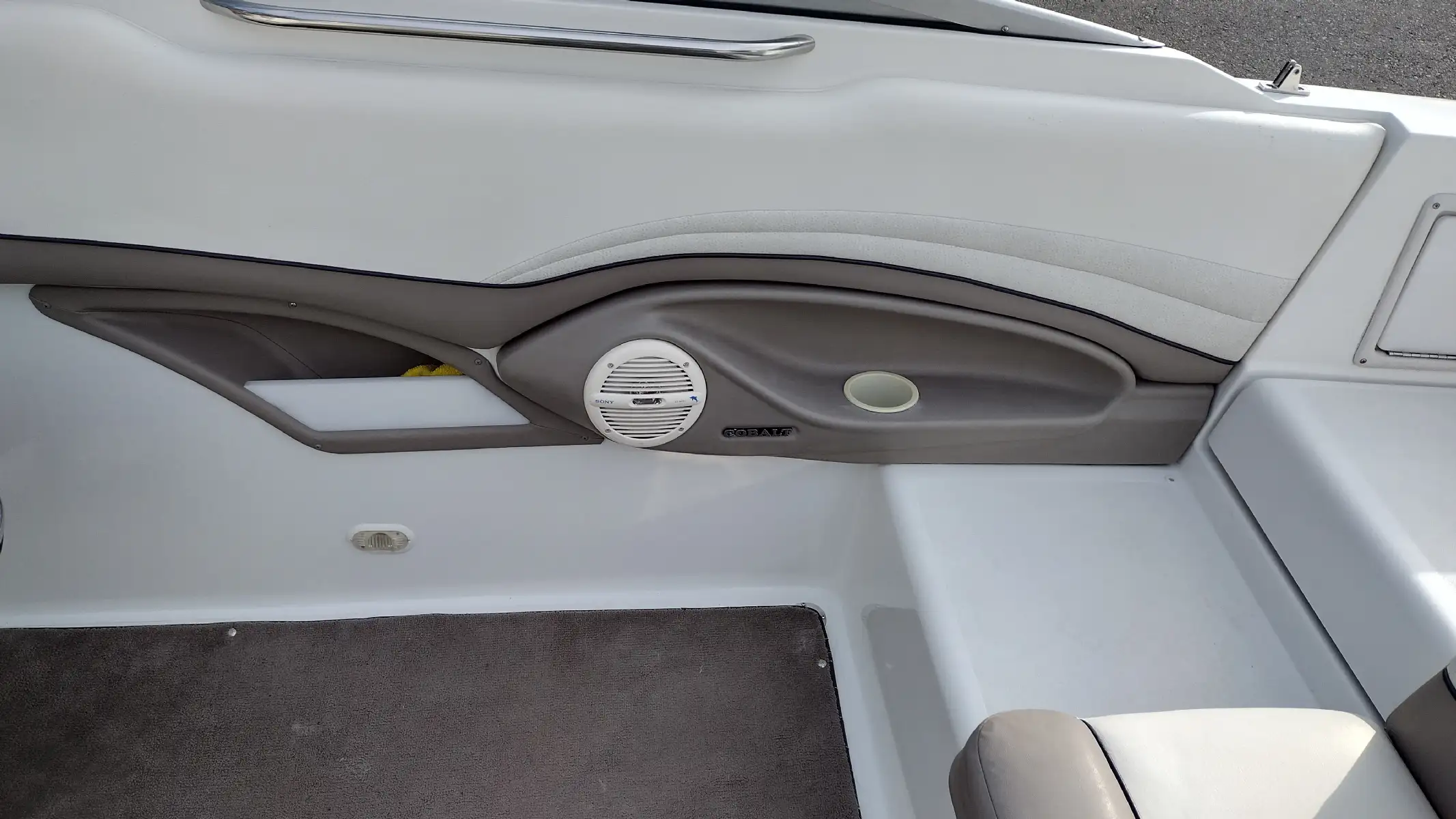 Standard Features Include; Bowrider, 12 Person/1450 lb Capacity, Bimini Top, Stainless Steel Dual Props, Docking Lights, Snap In Cockpit Carpet, Swim Platform w/ Ladder, Ski Tow Eye, Trim Tabs, Tilt Steering Wheel, Inflate-all Air Pump, In Floor Ski Locker, Enclosed Porta Potty