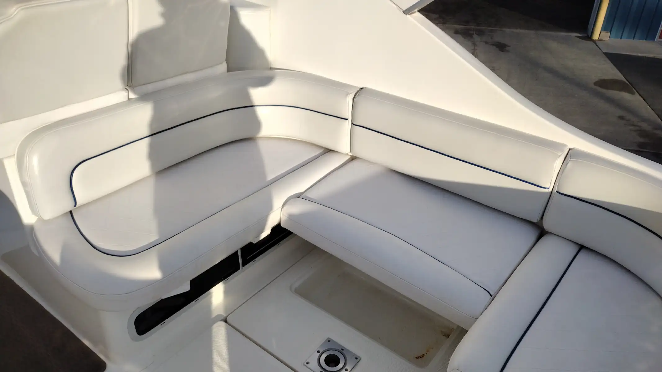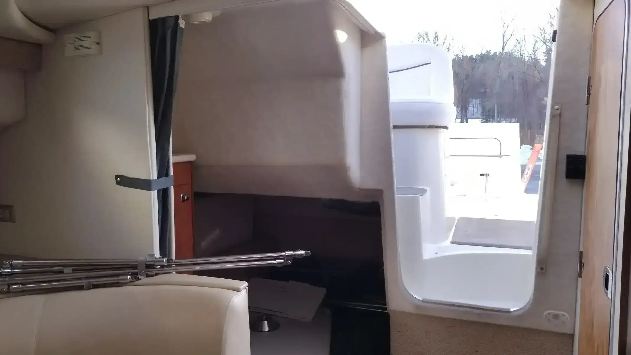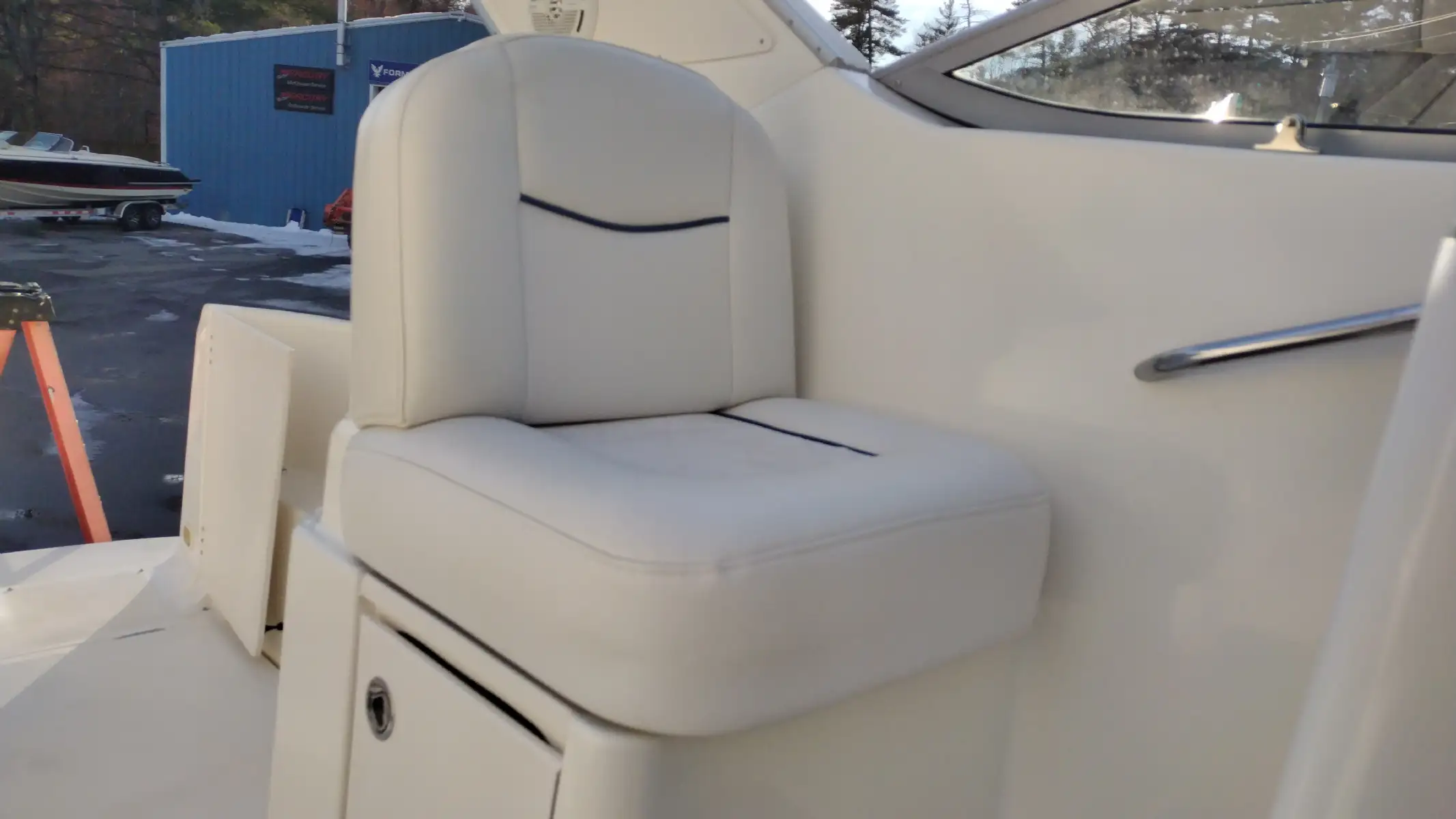 Standard Features Include; Arch w/ Camper Enclosure, Integrated Swim Platform w/ Ladder, Stainless Steel Props, Electric Windlass Anchor, Trim Tabs, Cockpit Wetbar, Battery Charger, Water Heater, Windshield Wipers, Shorepower
