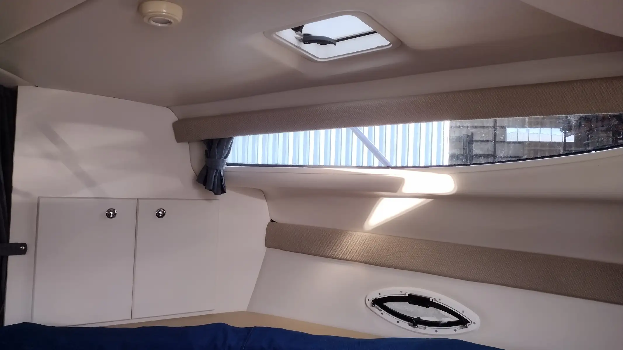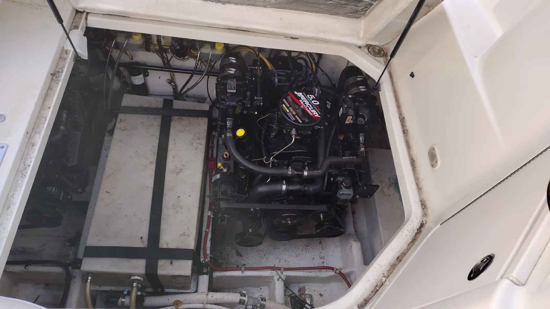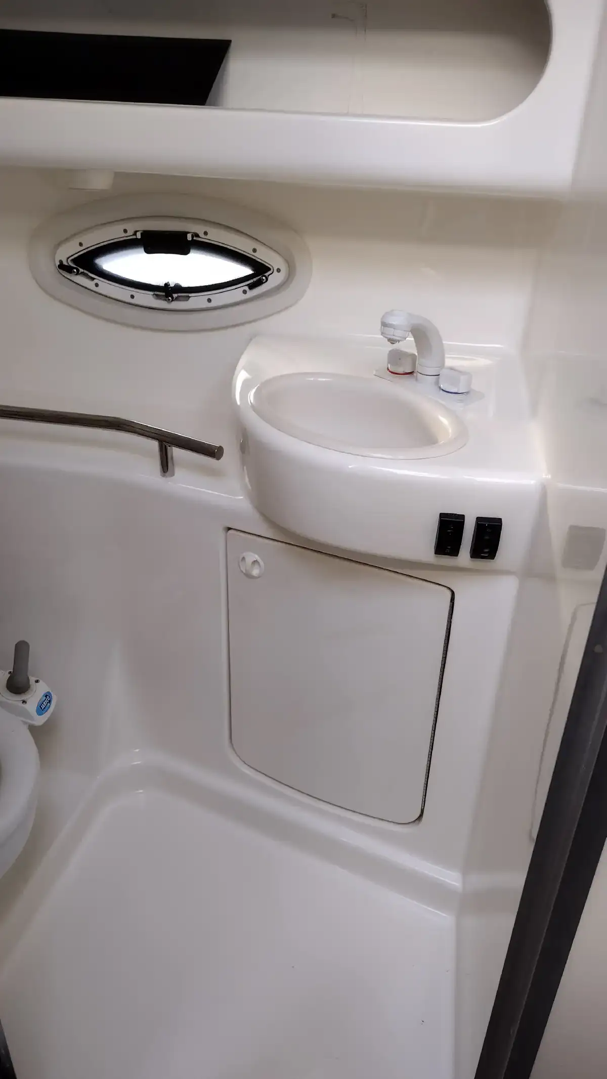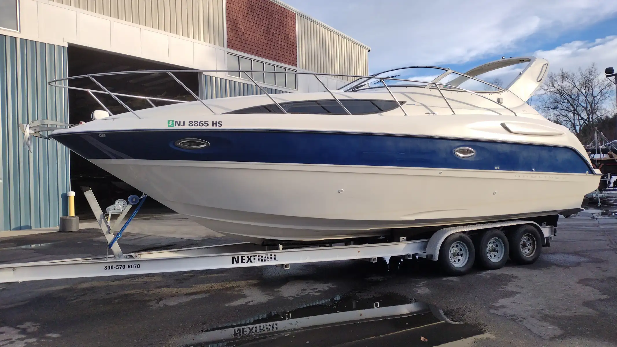 Standard Features Include; Arch w/ Camper Enclosure, Integrated Swim Platform w/ Ladder, Stainless Steel Props, Electric Windlass Anchor, Trim Tabs, Cockpit Wetbar, Battery Charger, Water Heater, Windshield Wipers, Shorepower