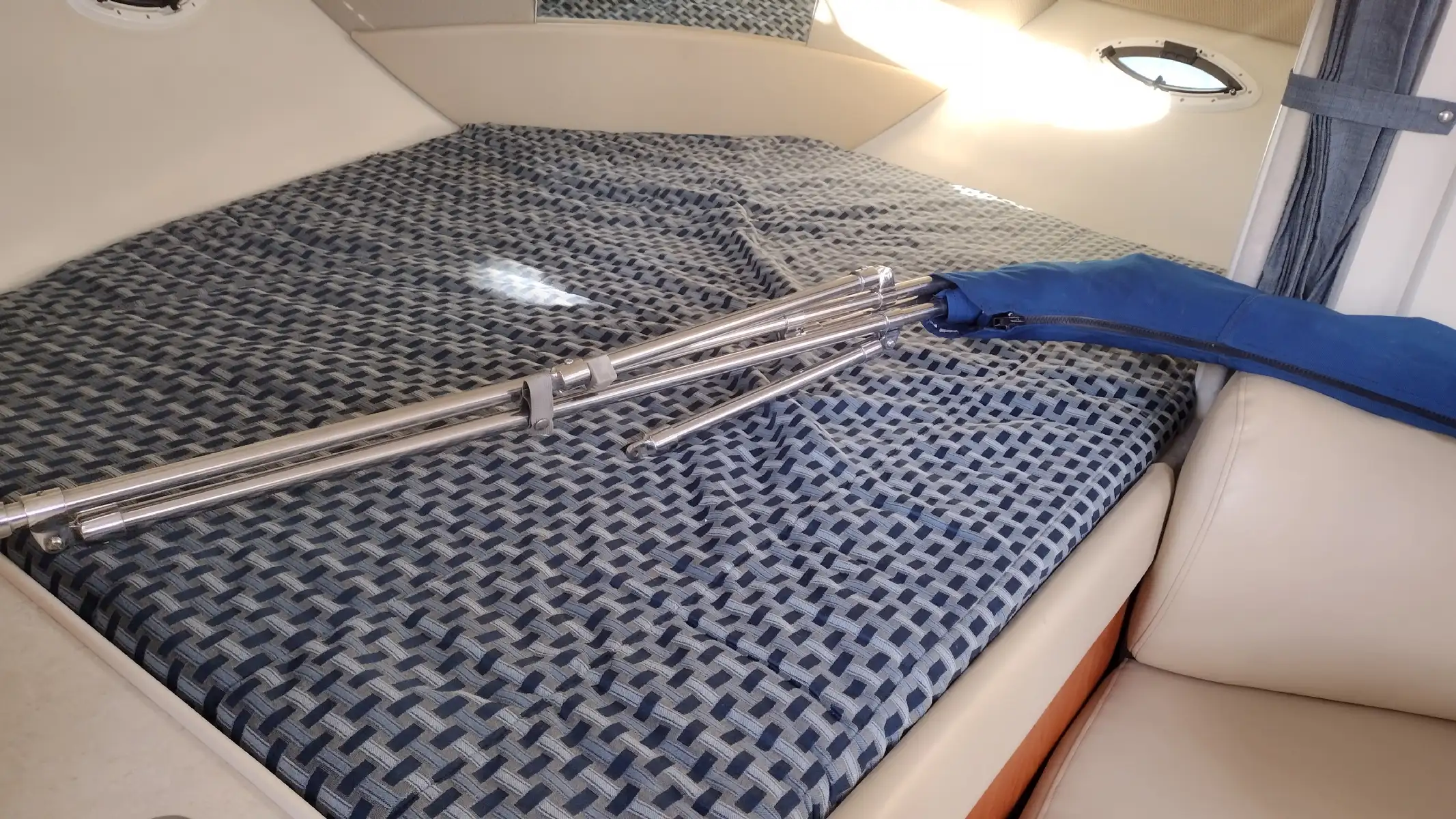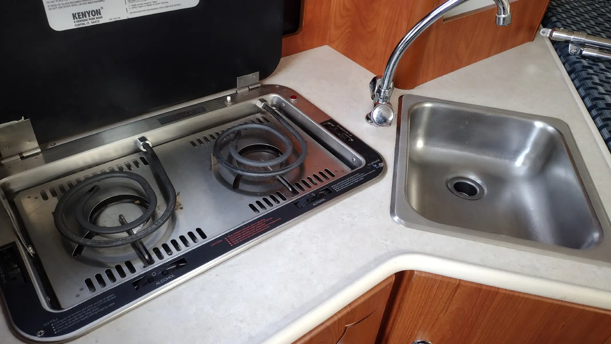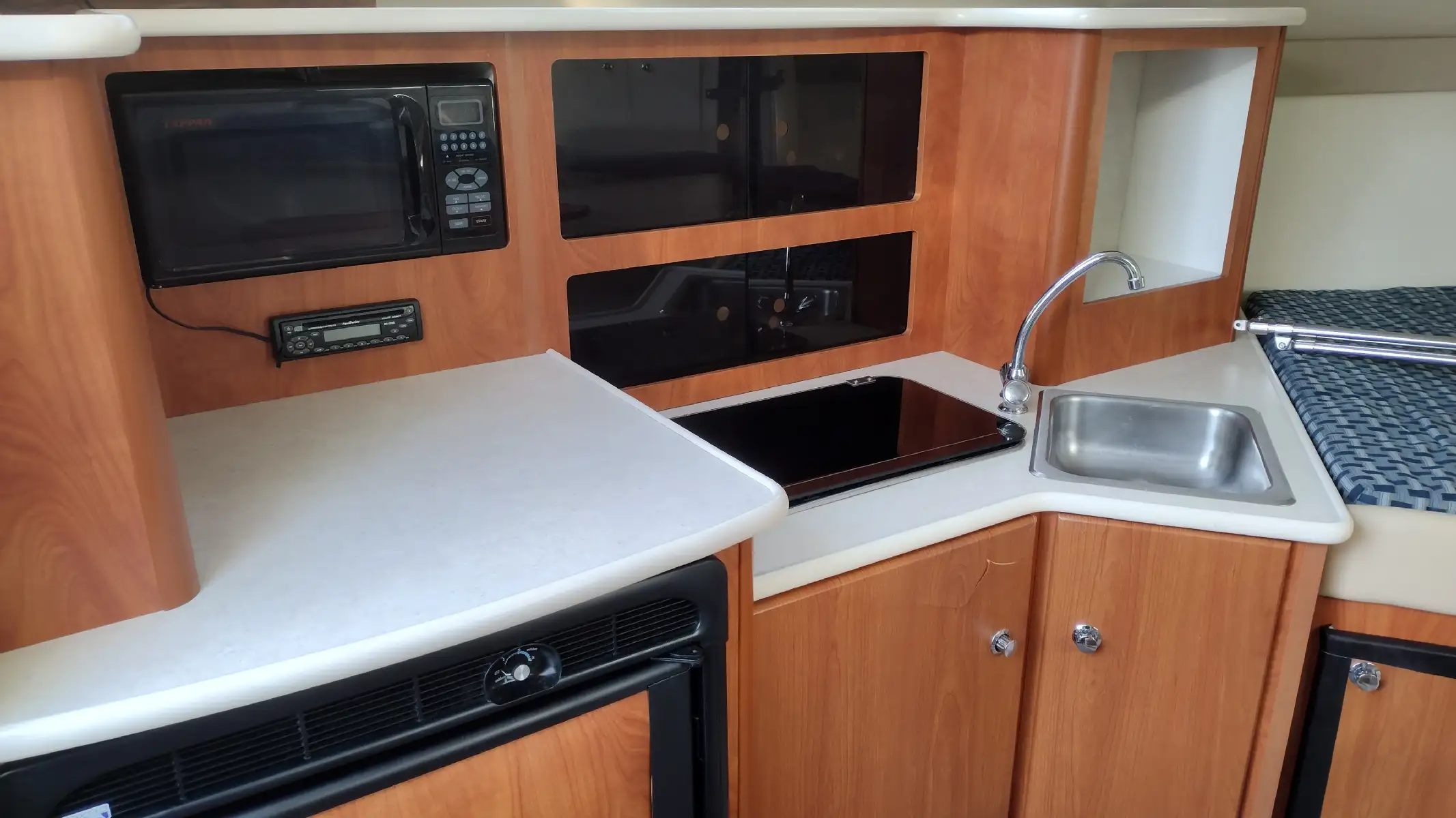 Cabin Features; Forward V-berth, Mid-cabin Double Berth & Convertible Dinette, Galley with Double Cooktop, Sink, Refrigerator & Microwave, Enclosed Head w/ Sink & Shower,