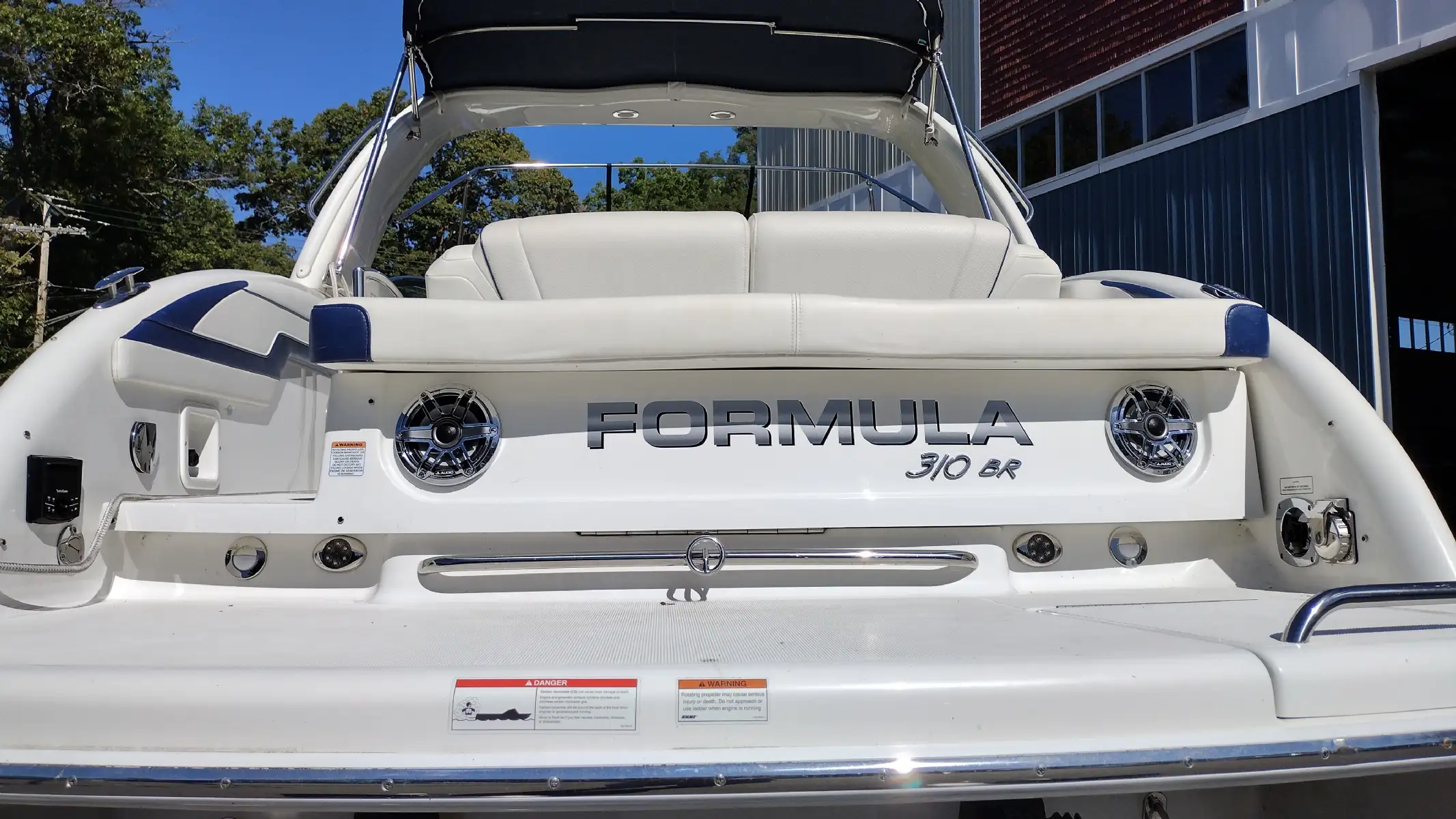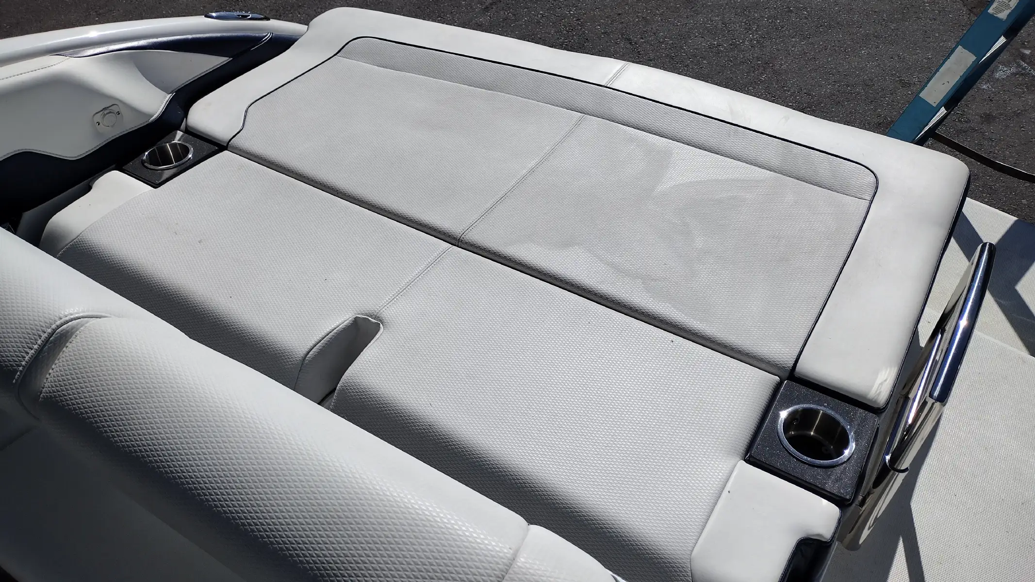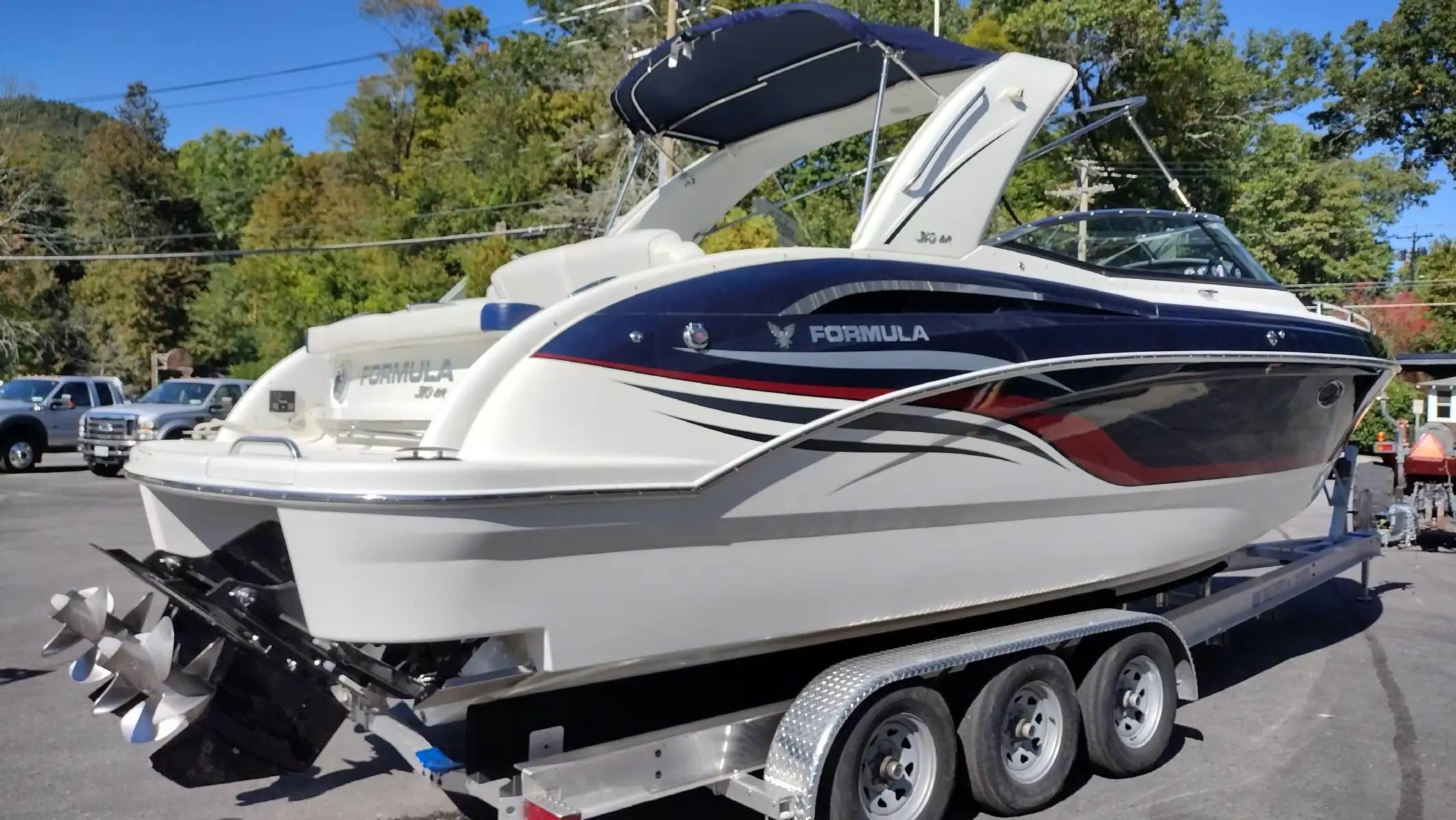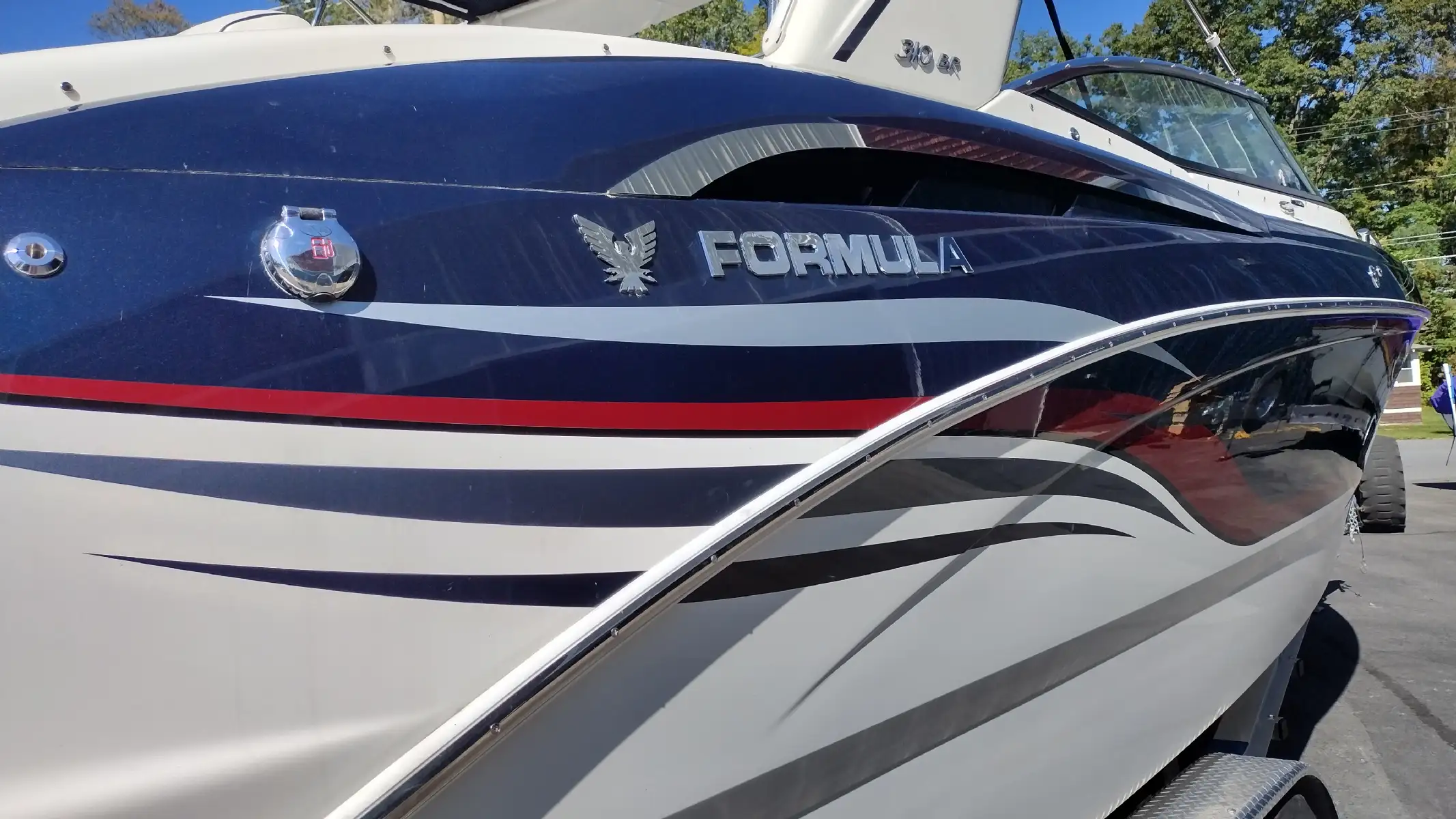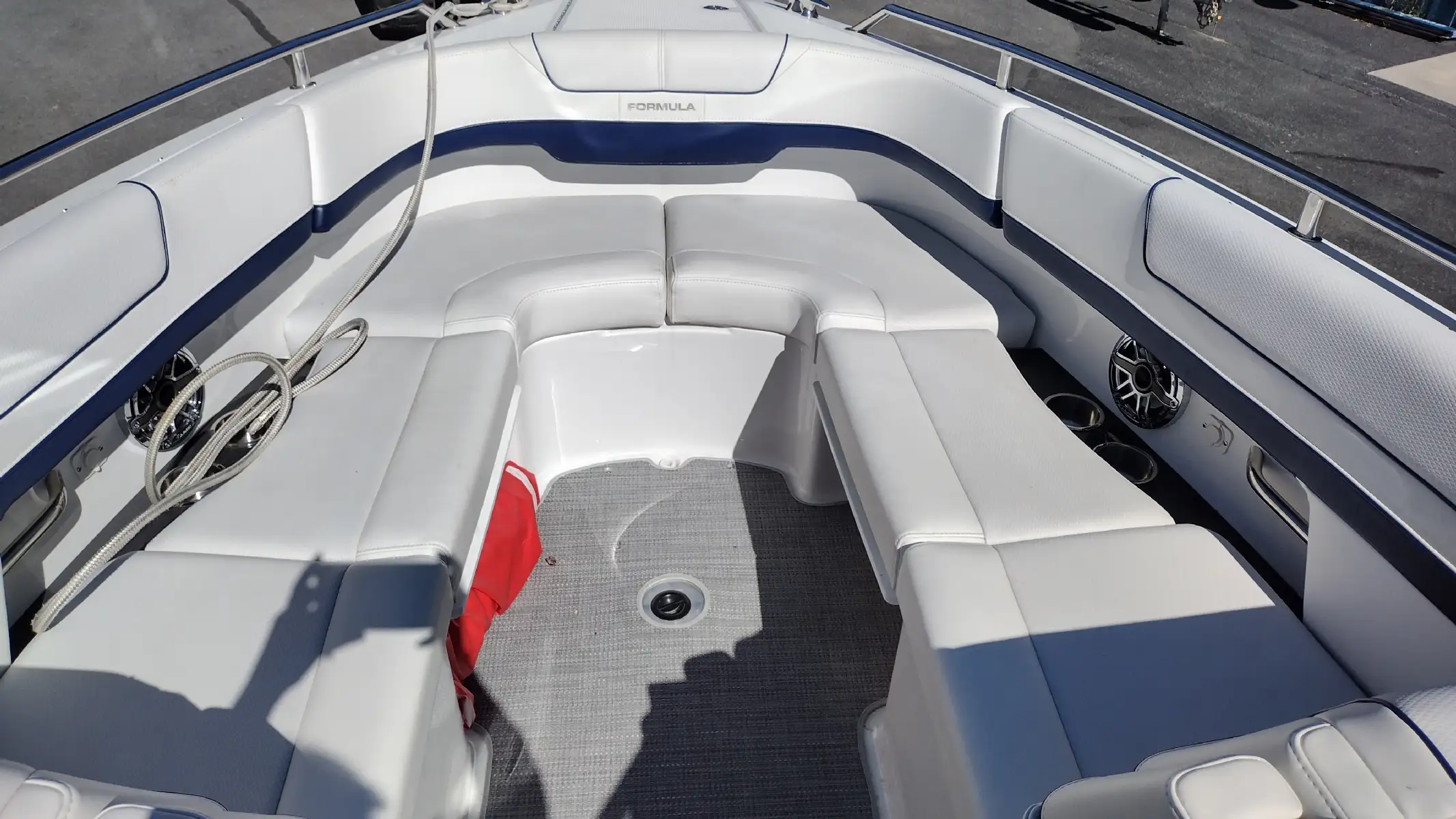 Standard Features Include; Bowrider w/Filler Cushions & Backrest, Bimini Top w/ Arch & Front/Sides/Aft Curtains, All-weather Bow & Cockpit Cover, Woven Cockpit Mat, Swim Platform w/Ladder, Fender Clips, Bow Docking Lights, Remote Bow Spotlight, Electric Windlass Anchor, Cockpit Refrigerator, Blue LED Lighting System, Vacuflush Head w/ Holding Tank & Pumpout, Cockpit Wetbar w/Sink & Dry Storage, Cockpit Heater, Transom Gate, SS Dual Props, 20 Amp Battery Charger, Auto Fire Extinguisher, 2 Removable Dual Height Tables w/ Filler Cushions & Drink Holders, Aft Facing Sun Lounge w/Dual Position Backrests, In Floor Wakeboard/Ski Storage, Gray Water System, Shorepower, Blue/White LED Courtesy Lights w/Remote