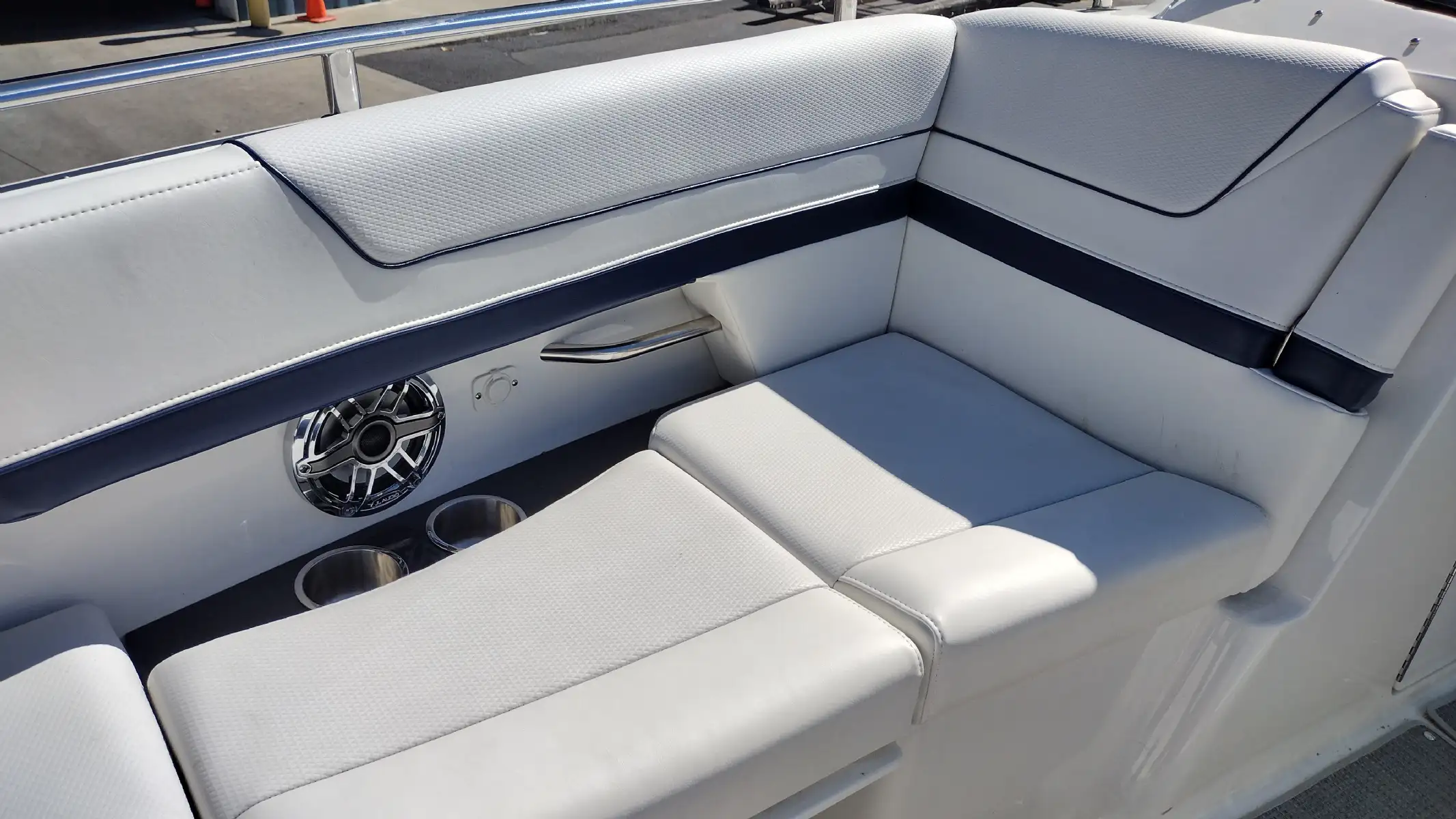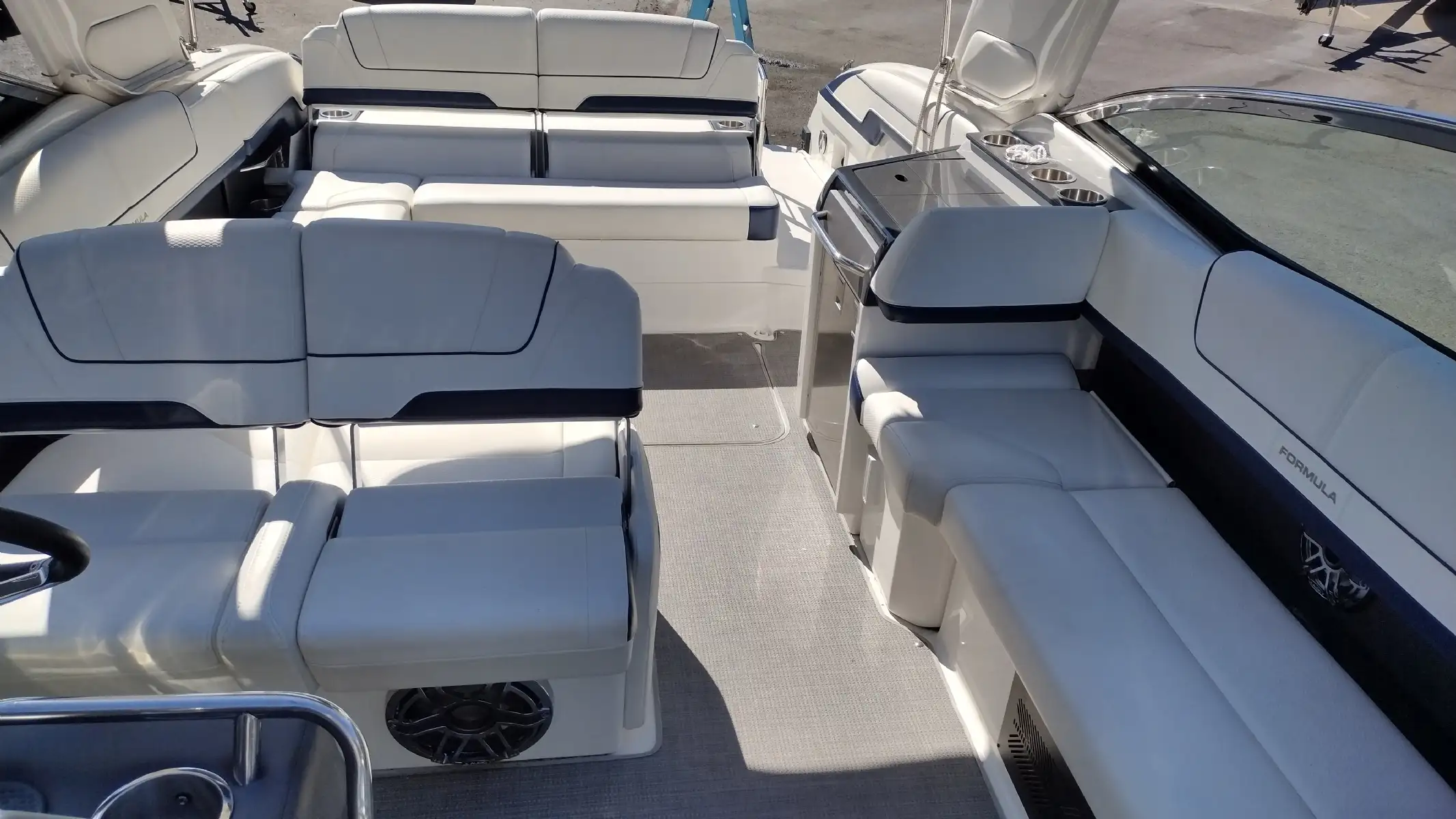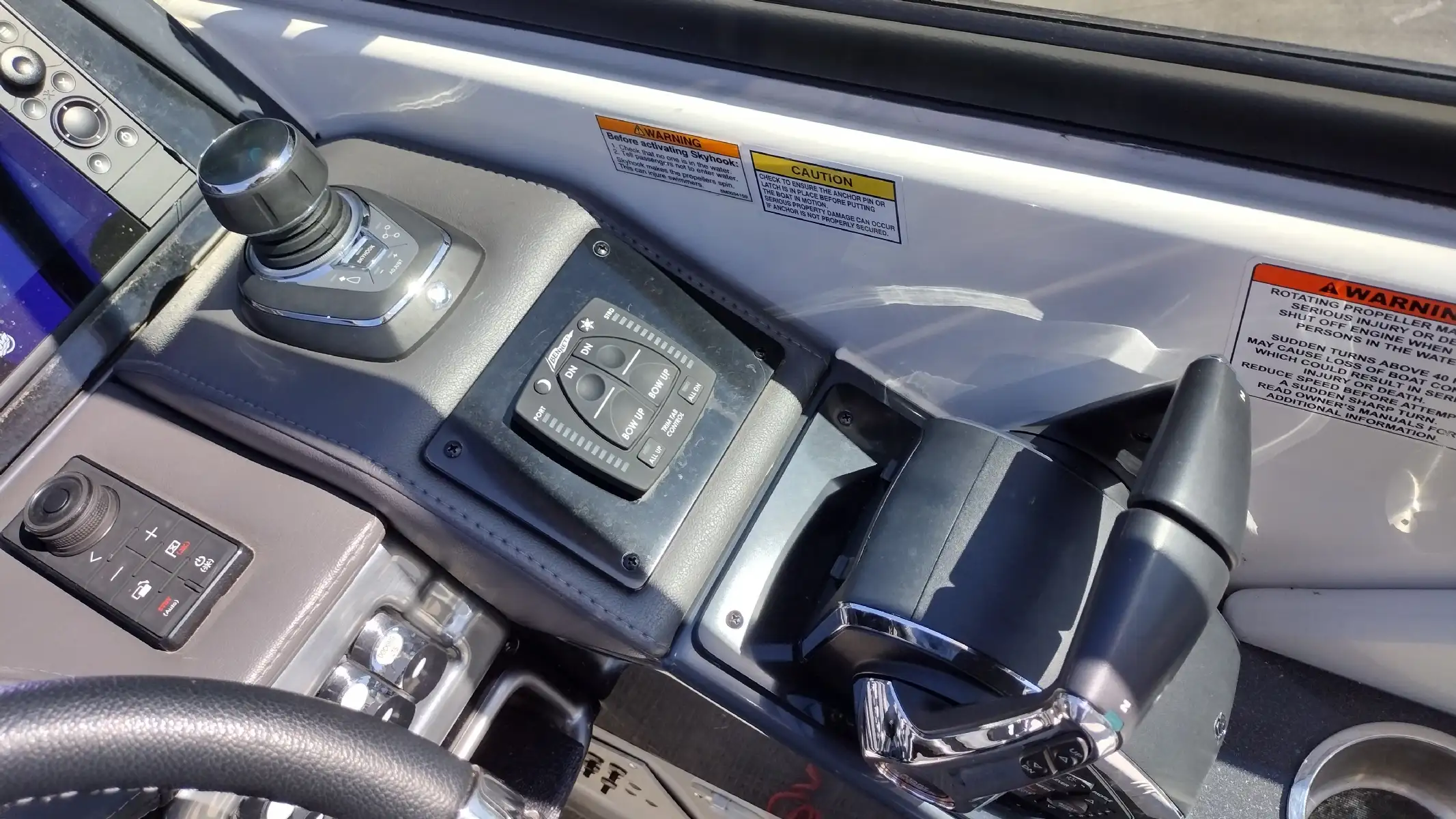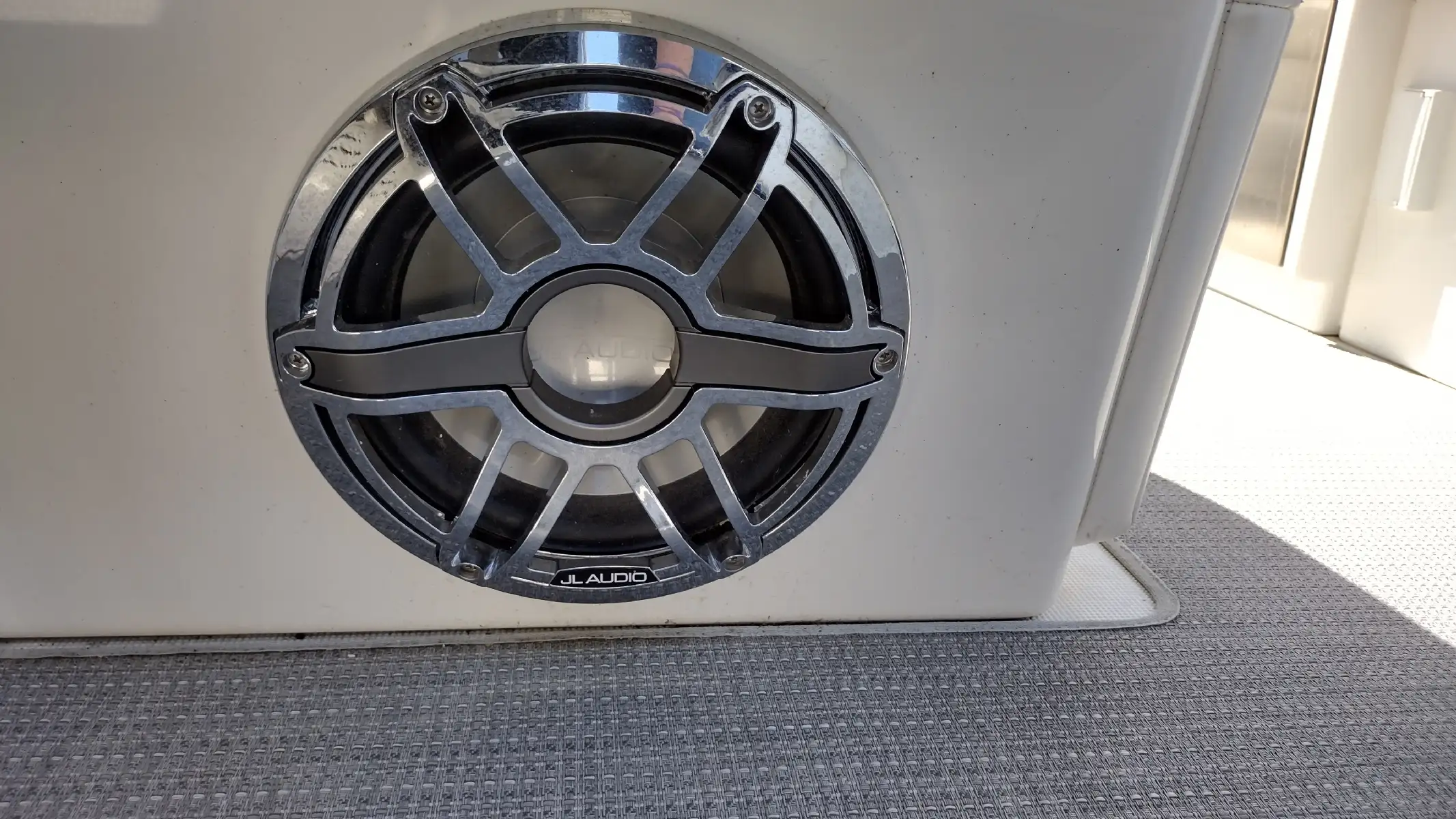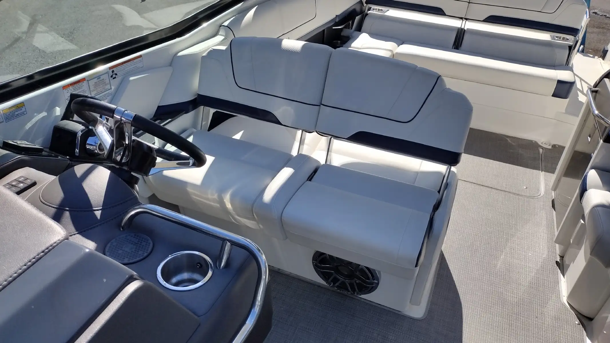 Electronics Include; Raymarine Axiom +12 Chartplotter w/ Depth Sounder & Remote Keypad, Rockford Fosgate AM/FM Stereo w/iPod/USB/Bluetooth Docking Station w/Amp & Subwoofer & Remotes at the Helm & Transom, JL Audio Lighted Speakers & 200w Sub & 600w Amp, Mercury DTS w/ SmartCraft VesselView Engine Monitor, Ritchie Compass, Captain’s Wireless Charging Pad
