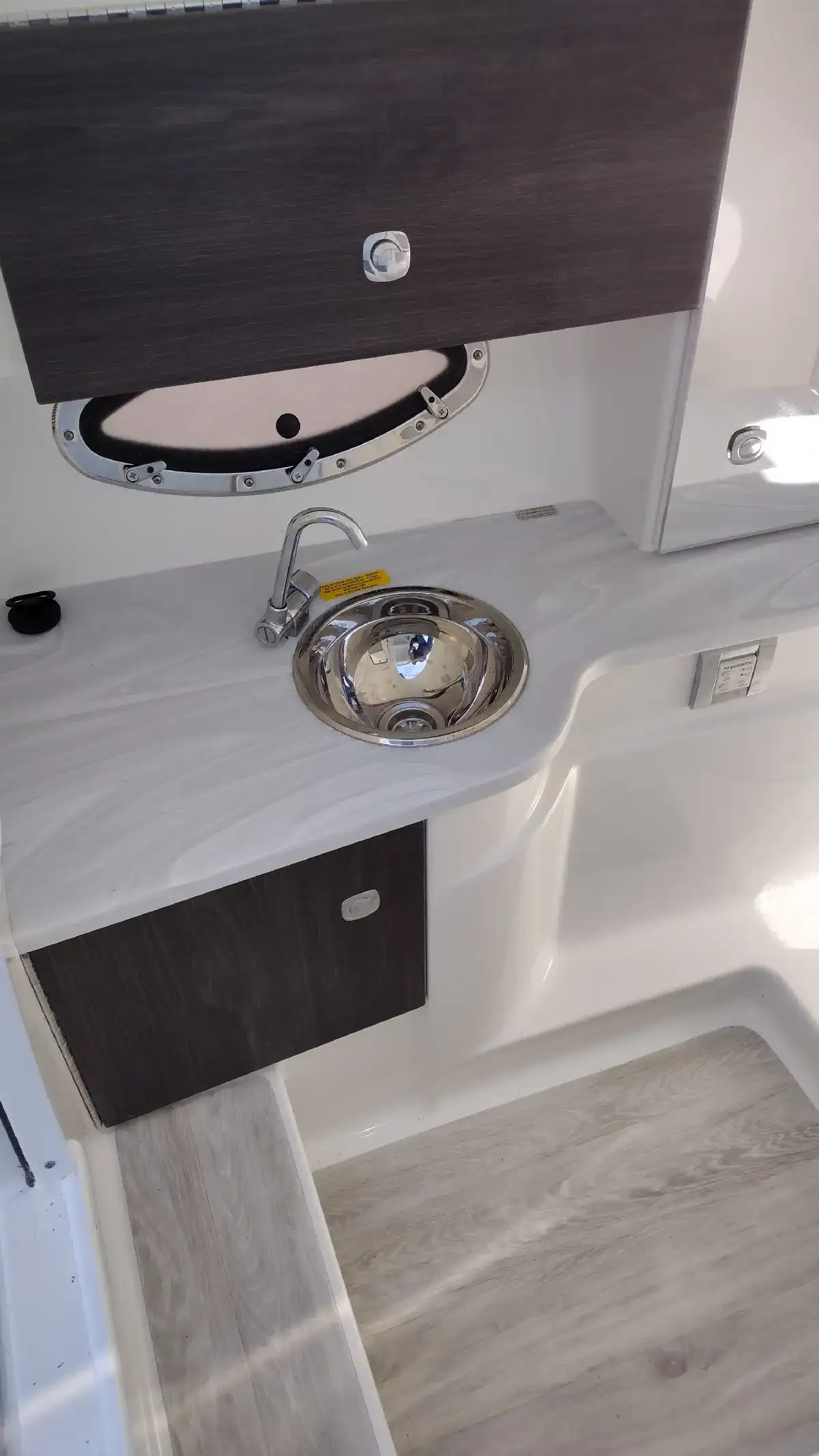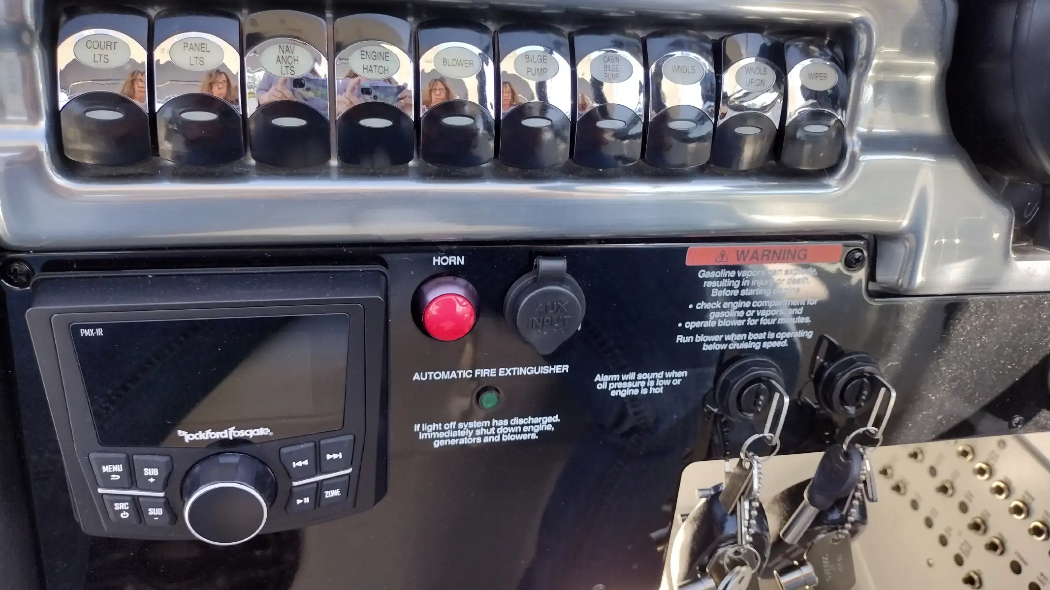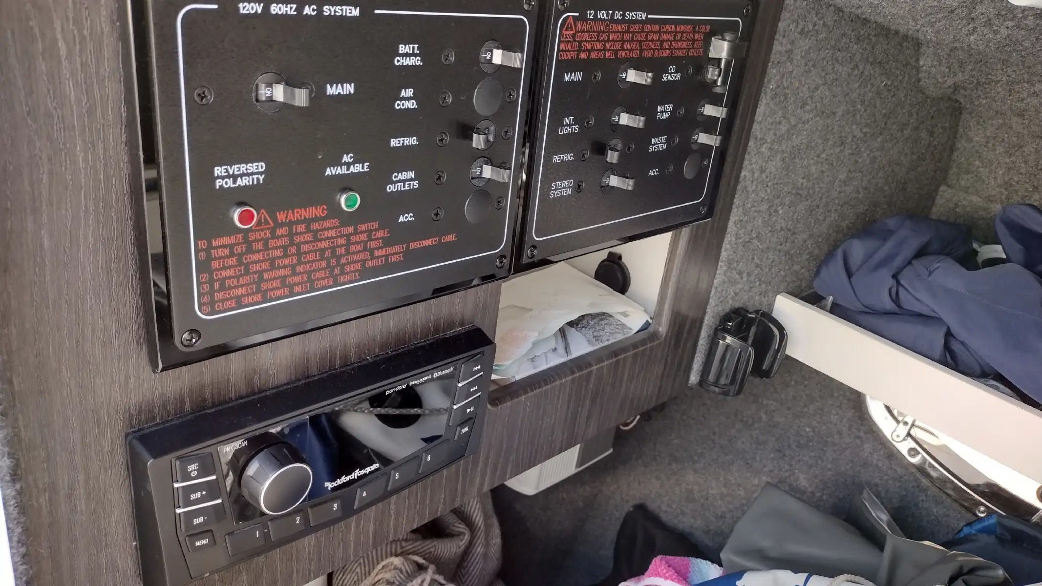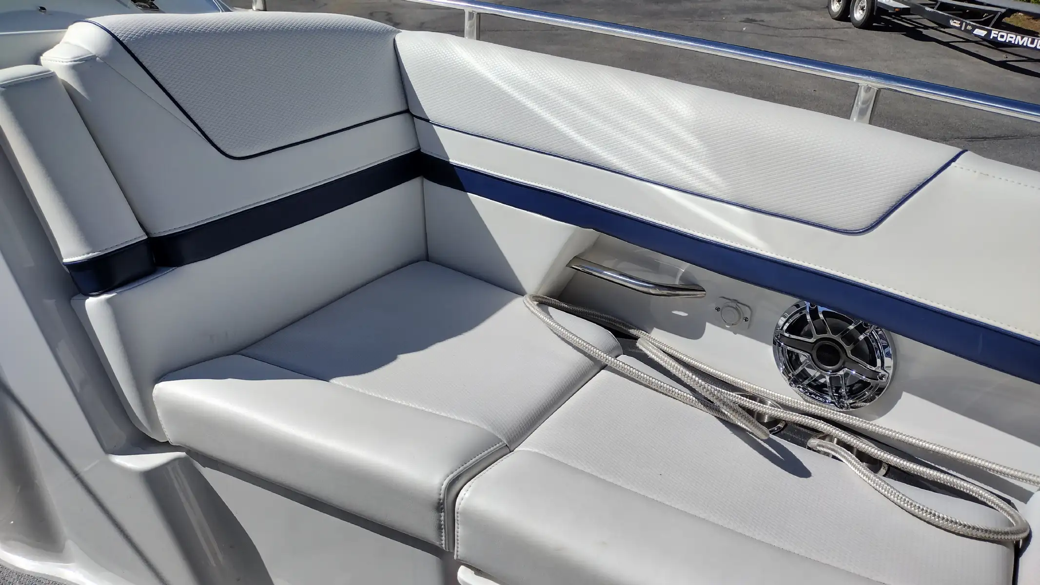Electronics Include; Raymarine Axiom +12 Chartplotter w/ Depth Sounder & Remote Keypad, Rockford Fosgate AM/FM Stereo w/iPod/USB/Bluetooth Docking Station w/Amp & Subwoofer & Remotes at the Helm & Transom, JL Audio Lighted Speakers & 200w Sub & 600w Amp, Mercury DTS w/ SmartCraft VesselView Engine Monitor, Ritchie Compass, Captain’s Wireless Charging Pad
