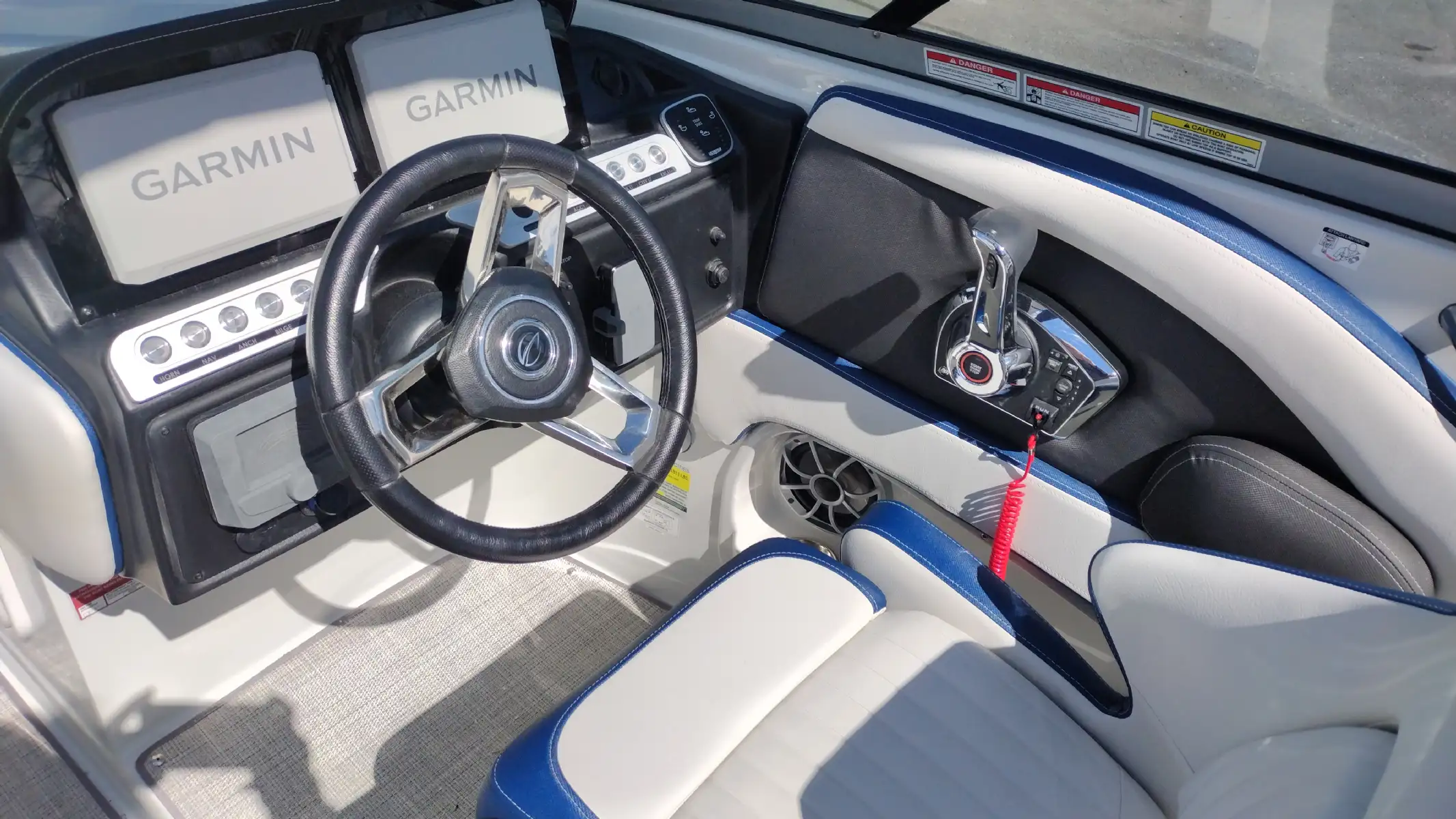 Electronics Include; Garmin 7” Twin Touch Screens w/LakeVu G3 Maps, Wet Sounds Premium Stereo w/ LCD Transom Remote