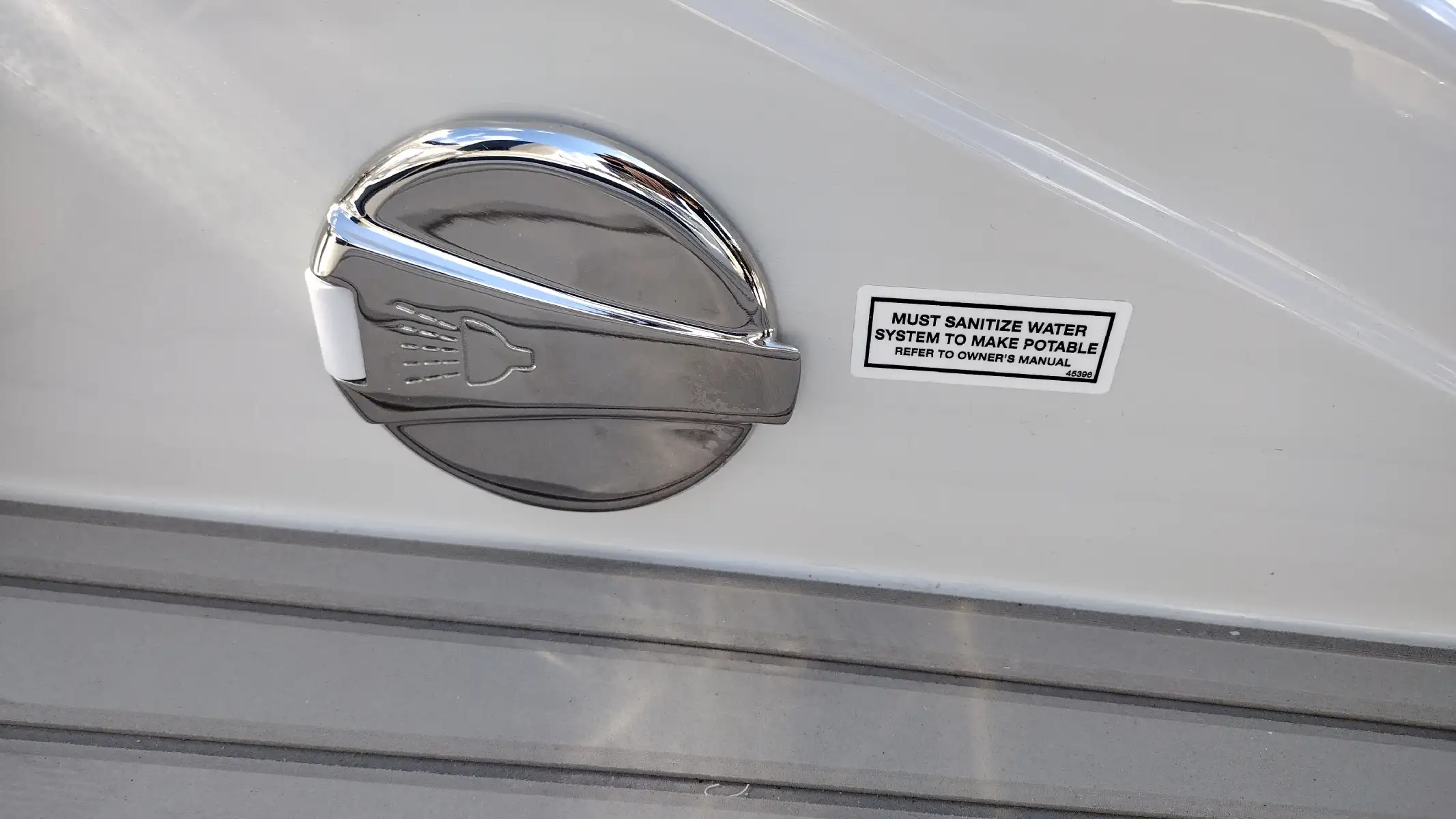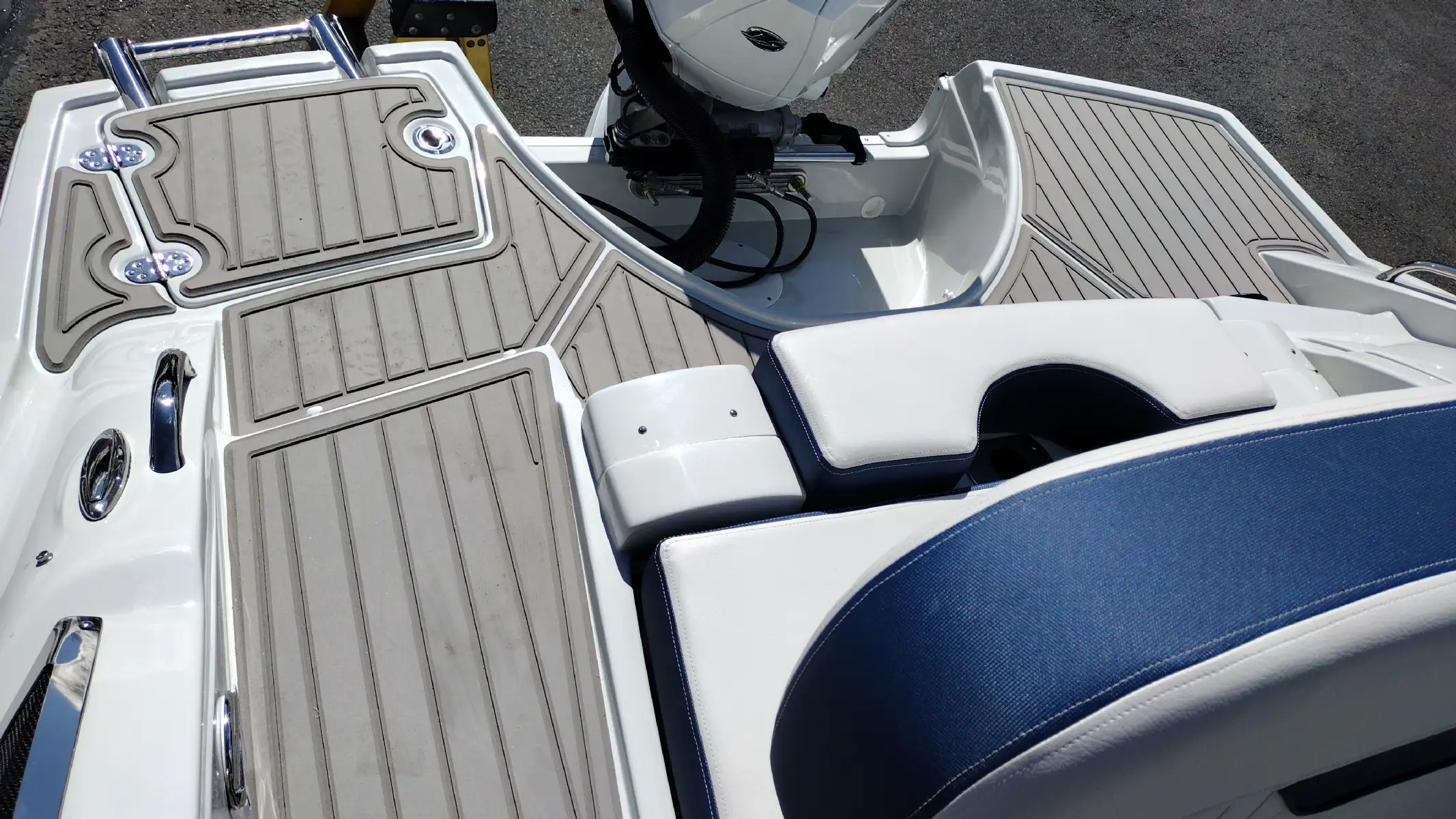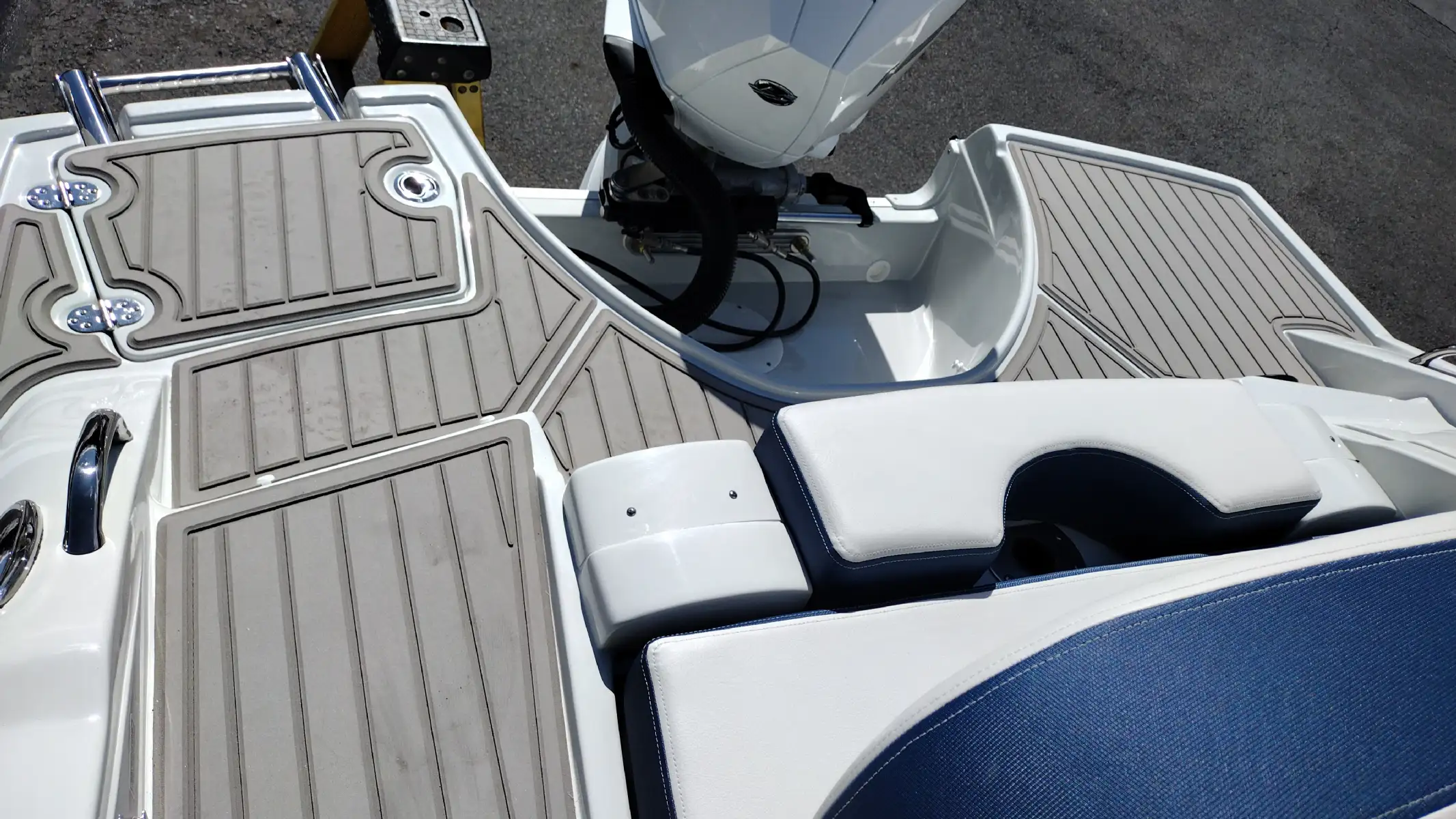Standard Features Include; Bowrider w/Filler Cushions, Mooring Cover, Electric Fold Down Arch w/Sun Top & LED Lights, Battery Charger, Cell Phone Holder w/Wireless Charging & USB-C Port, Enclosed Electric Flush Head w/Holding Tank & Vanity w/Sink, LED Courtesy Lights w/Keychain Remote, Underwater Transom Lights, Swim Platform w/ Soft Touch Mat & Ladder, Docking Lights, Snap In Woven Cockpit Mat, Aft Electric Sun Lounge w/Dual Actuators, Hand-held Cold Freshwater Shower at Stern, Portable Side Mount Table, Transom Trim Switch, Trim Tabs w/Indicators, Fender Clips, Ski Tow Rail w/Eye