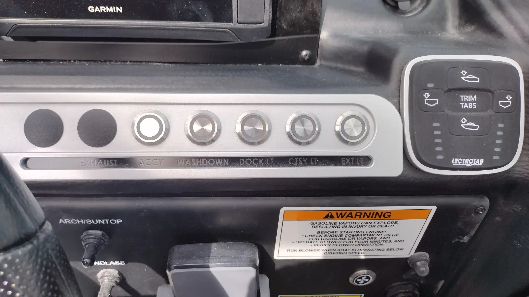 Electronics Include; Garmin 7” Twin Touch Screens w/LakeVu G3 Maps, Wet Sounds Premium Stereo w/ LCD Transom Remote