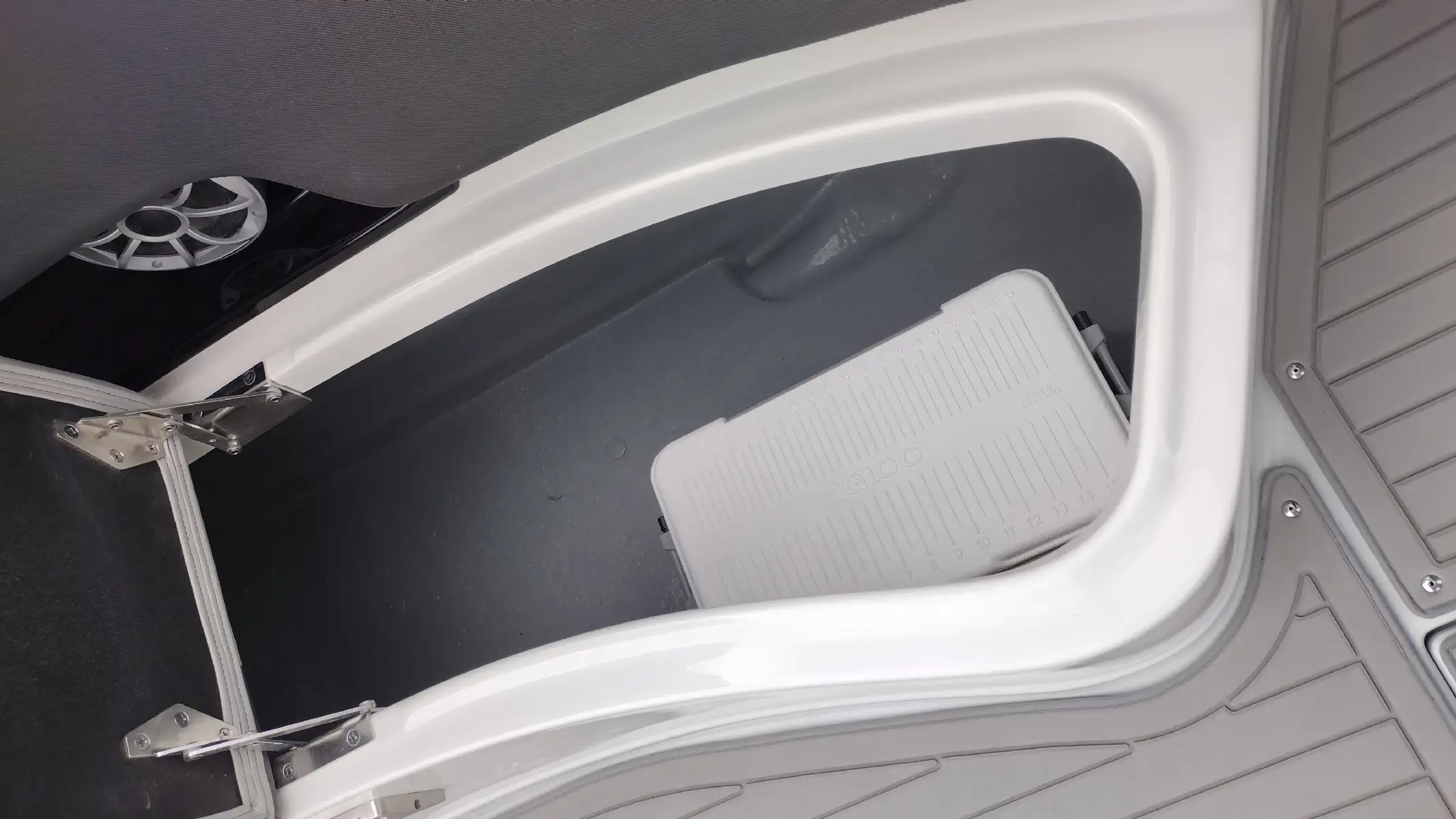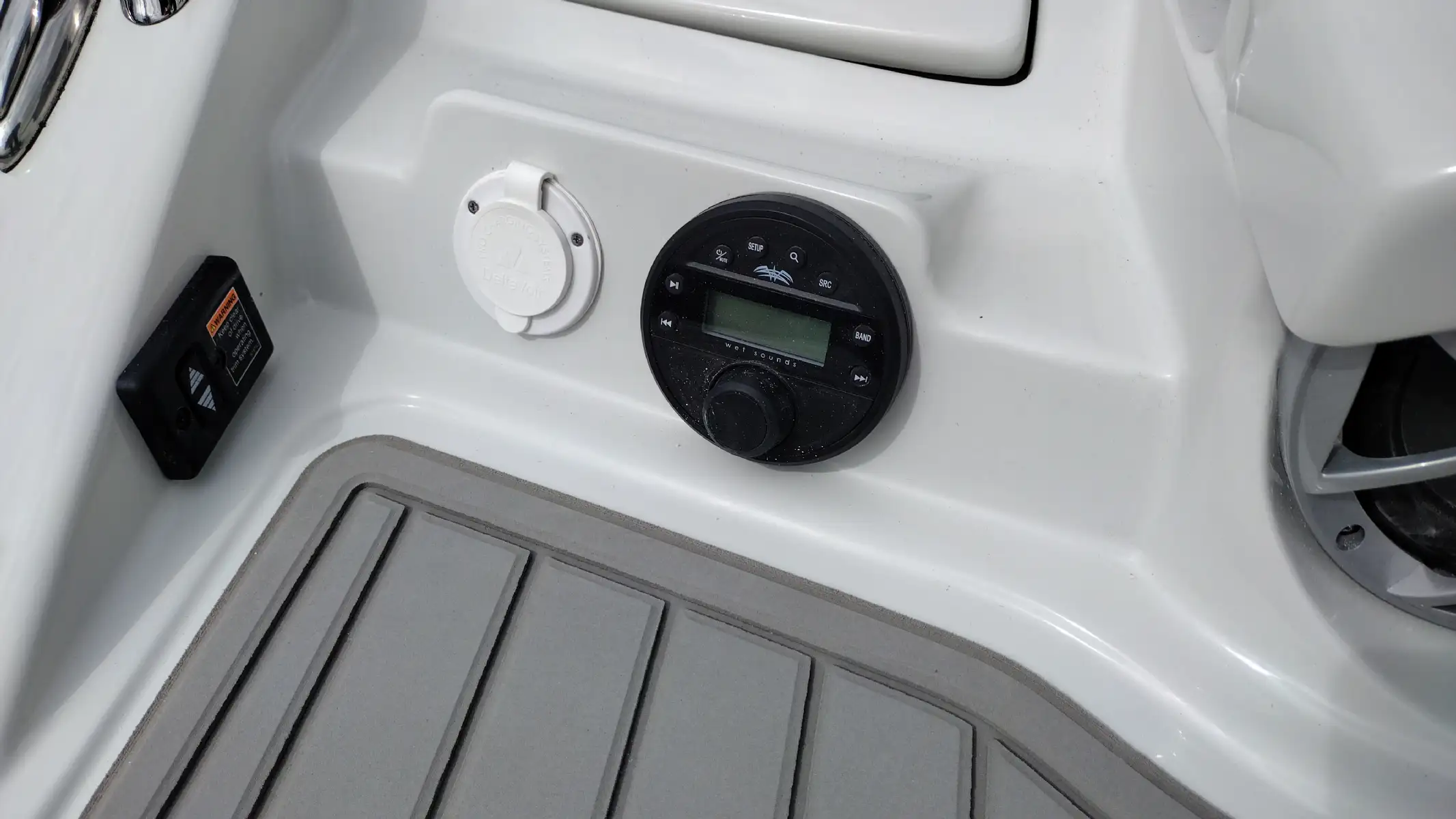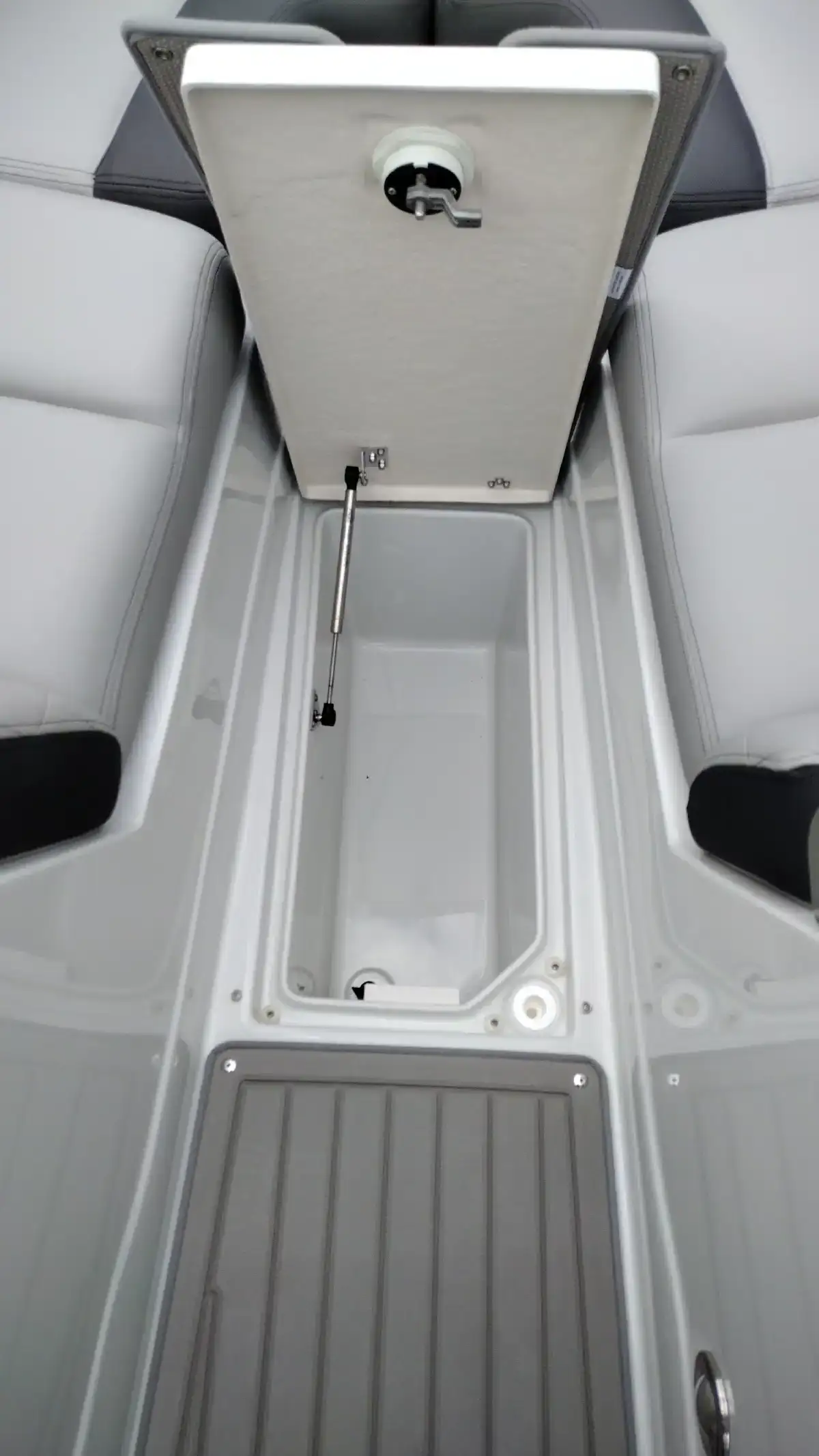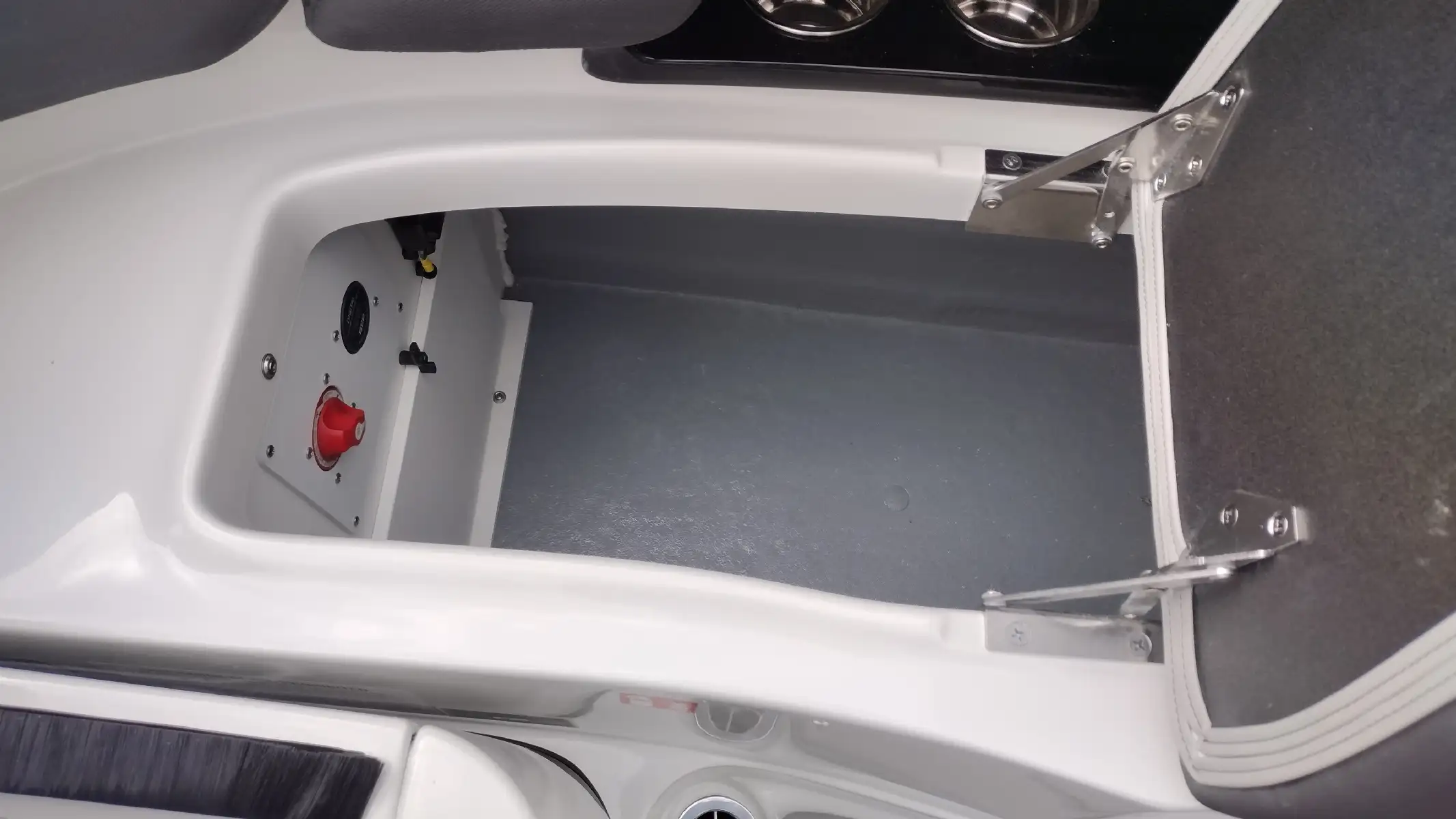 Standard Features Include; Bowrider, Bow & Cockpit Cover, Electric Fold Down Arch w/Sun Top & LED Lights, Snap In Soft Touch Mat, Cockpit Sink & Refrigerator, Battery Charger, Windlass Anchor, Cell Phone Holder w/Wireless Charging & USB-C Port, Enclosed Electric Flush Head w/Holding Tank & Vanity w/Sink, Docking Lights, LED Courtesy Lights w/Keychain Remote, Underwater Transom Lights, Powered Swim Step w/Boarding Assist Handle, Swim Platform w/ Soft Touch Mat & Ladder, Aft Electric Sun Lounge w/Dual Actuators, Hand-held Cold Freshwater Shower at Stern, Pop up Steel Ski Tow, Portable Side Mount Table, Transom Trim Switch, Trim Tabs w/Indicators, Fender Clips