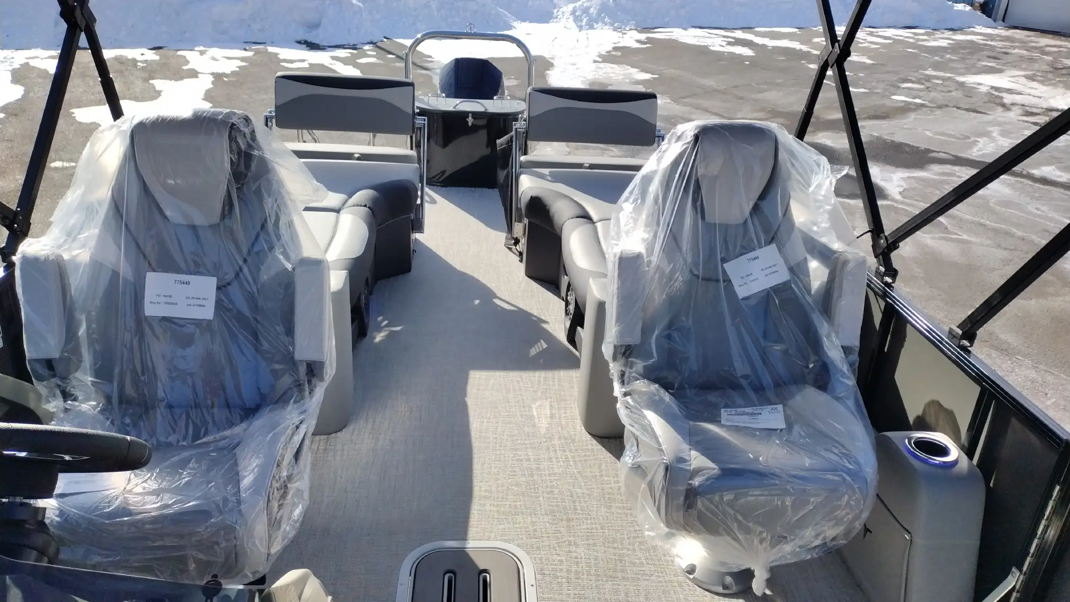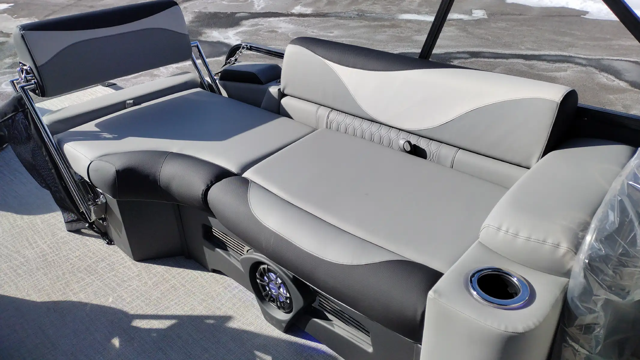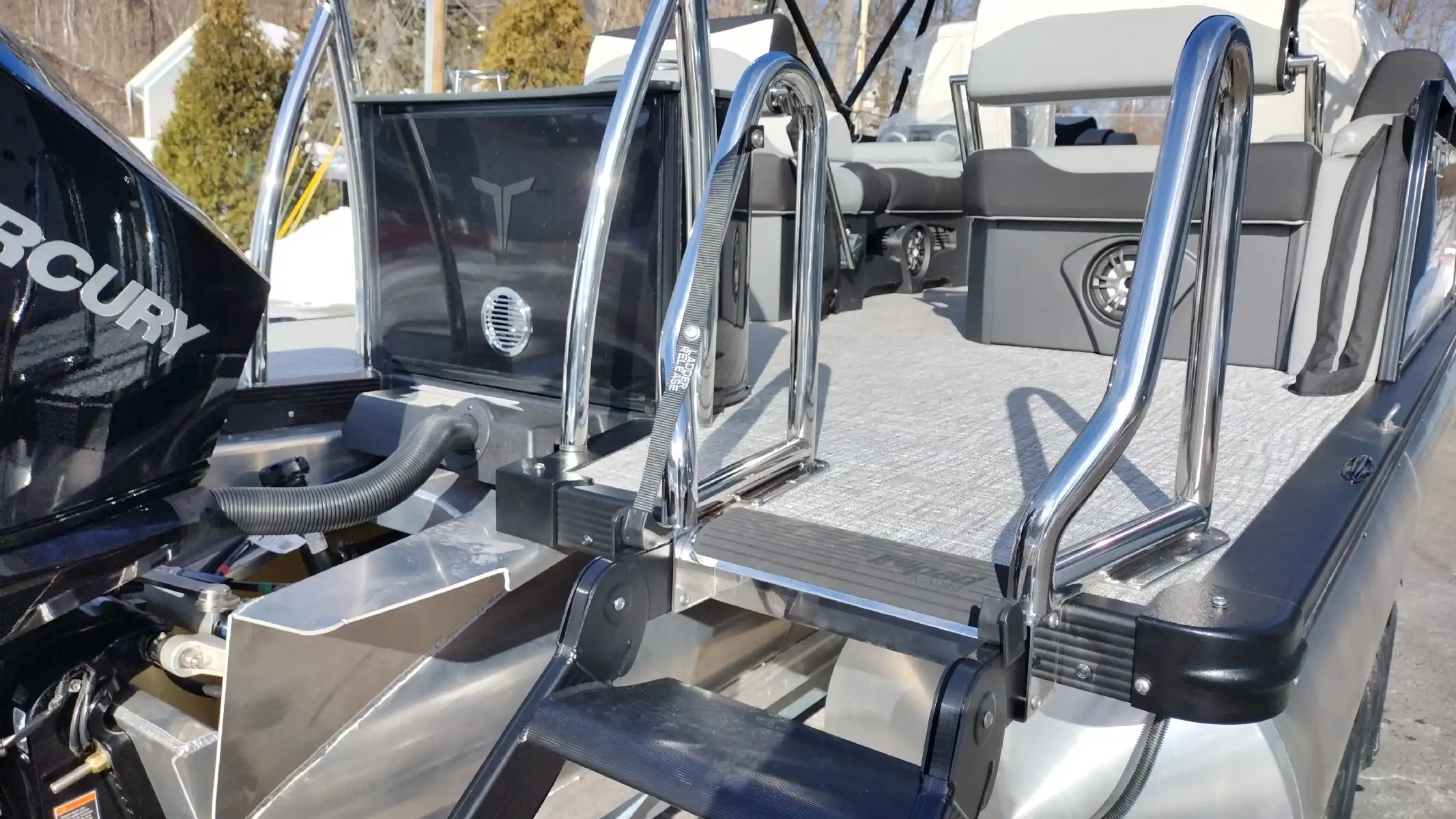 Standard Features Include; LTZ Platinum Edition Package, Sport Triple Toon Performance Package, Bimini Top, Blue Ice Lighting Package, Ski Tow Bar, Extended Rear Deck, Stainless Steel Prop, Vinyl Riptide Shadow Flooring, 20 Qt Insulated Cooler, Admiral High Back Reclining Captain’s Chair, In Tube Storage, Patio Pad, Lounge Arm Drawer Unit w/ Glove Box & Dog Bowl Insert, Lillipad Easy Step Ladder