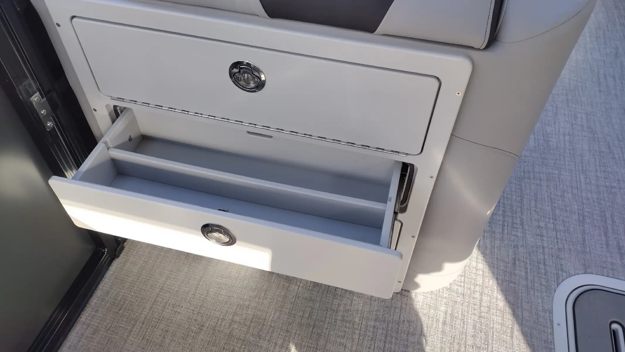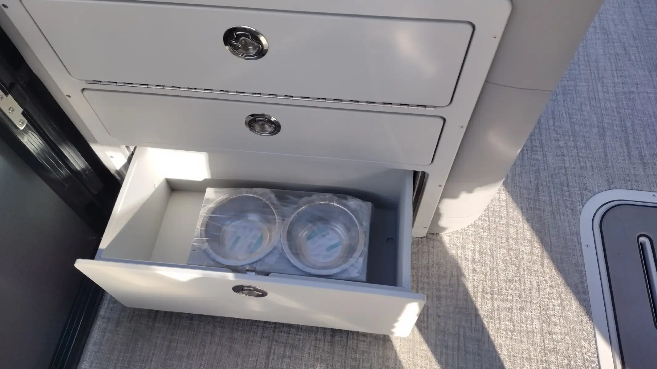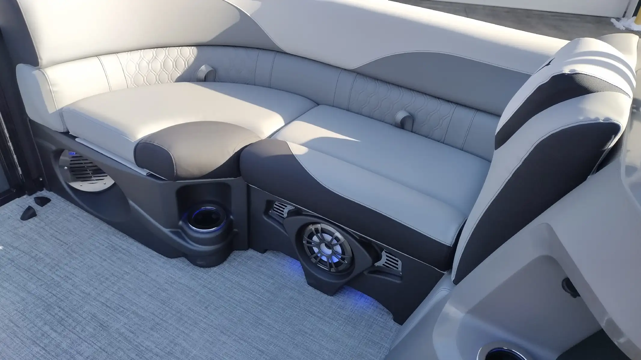 Standard Features Include; LTZ Platinum Edition Package, Sport Triple Toon Performance Package, Bimini Top, Blue Ice Lighting Package, Ski Tow Bar, Extended Rear Deck, Stainless Steel Prop, Vinyl Riptide Shadow Flooring, 20 Qt Insulated Cooler, Admiral High Back Reclining Captain’s Chair, In Tube Storage, Patio Pad, Lounge Arm Drawer Unit w/ Glove Box & Dog Bowl Insert, Lillipad Easy Step Ladder