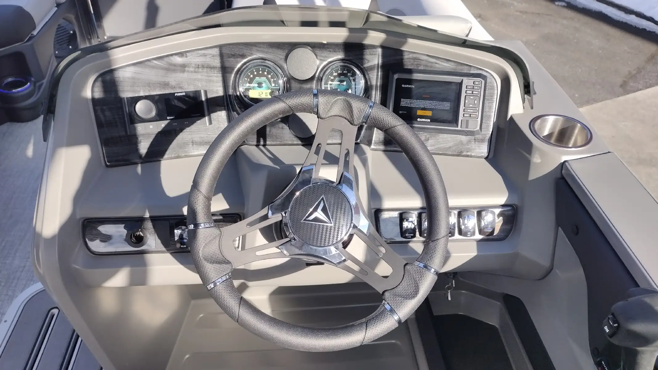 Electronics Include; Fusion RA-210 Stereo w/ 6 Fusion EL Speakers/Amp & USB Audio Input w/ Charge, Tach/Volt/Fuel Gauges